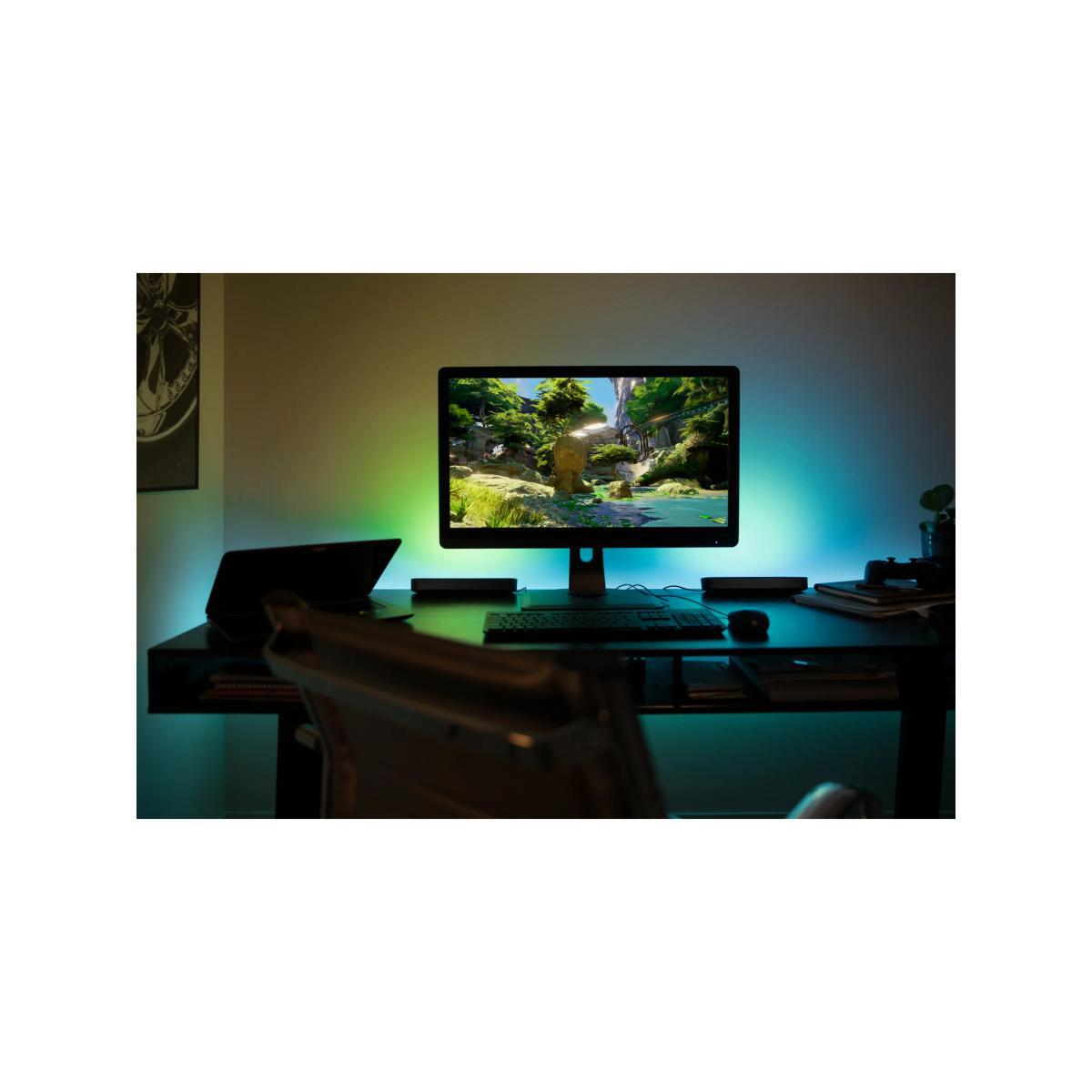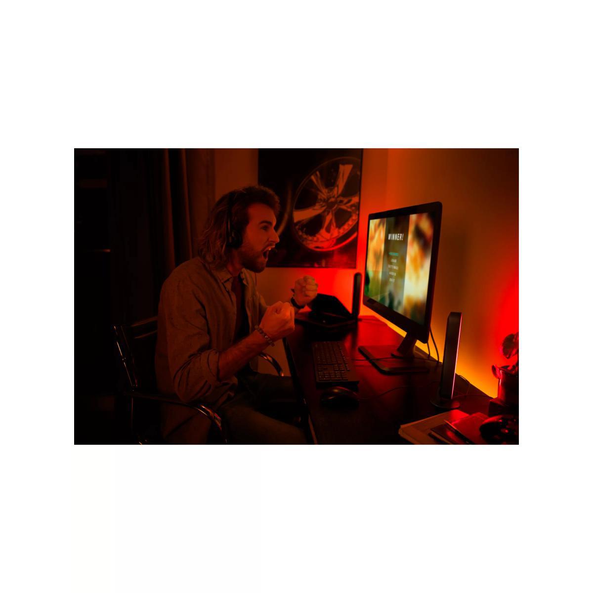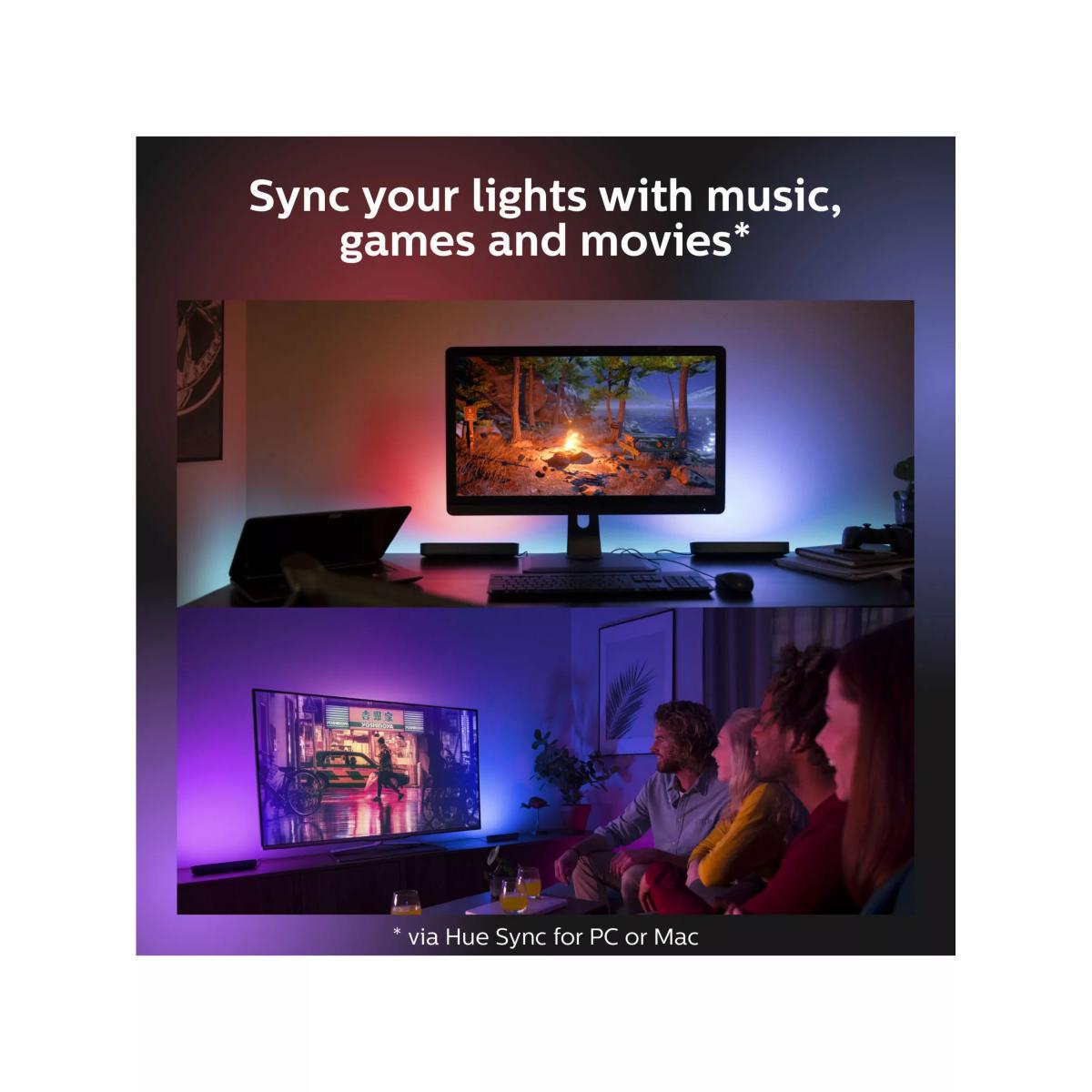 T3 Awards Winner 2018 - Best Connected Lighting - Philips Hue The Hue Play Light Bar creates a vibrant ambiance, with 16 million colour variations for different lighting effects. Lay it on the floor, stand it on furniture, or mount it on the back of your TV for beautifully variable illumination at home. Use the Hue app on your iO. S or Android smart device to control remotely, choose preset 'scenes', set timers, and more. Create your ambiance With 16 million colour variations to choose from, you can set Hue to the mood that suits you. Colours can be saved as 'Scenes', so you can revisit your favourites, or you can choose from available presets. Programmable Hue can be tailored to your life with alarms, timers and alerts, so you can set Hue to wake you up with a soft sunrise glow, or to turn all of your Hue lights off at bedtime. You can set your lights to come on when you're away, to deter thieves, or control them remotely via the app, from anywhere with Wi-Fi. Hue is compatible with Amazon Alexa, Apple Home Kit and Google Home devices for voice control of your lights. Limitless possibilities With the 'Hue' app (available on iO. S and Android), you can control your lights from anywhere with Wi-Fi via your smart device. Perfect TV backlight Synchronise lighting to music with the Hue Sync app Connect up to 3 Hue Plays to one mains plug socket Hue Plays require the separate Hue Bridge to connect to your home network. Hue Bridge is available separately, or as part of a Hue Starter Kit.