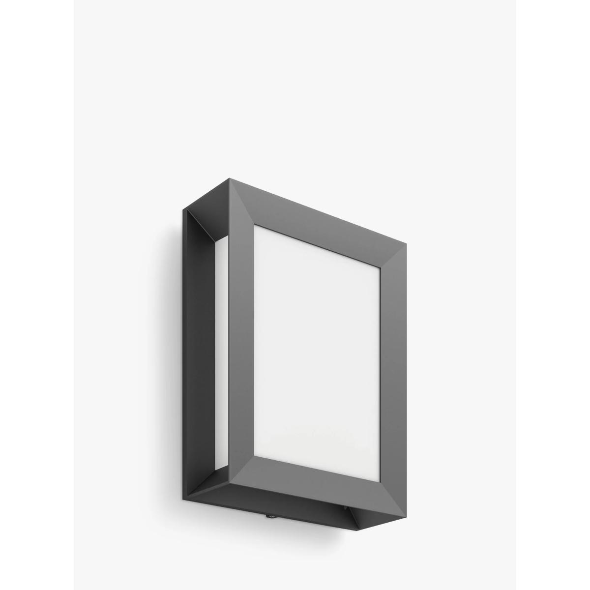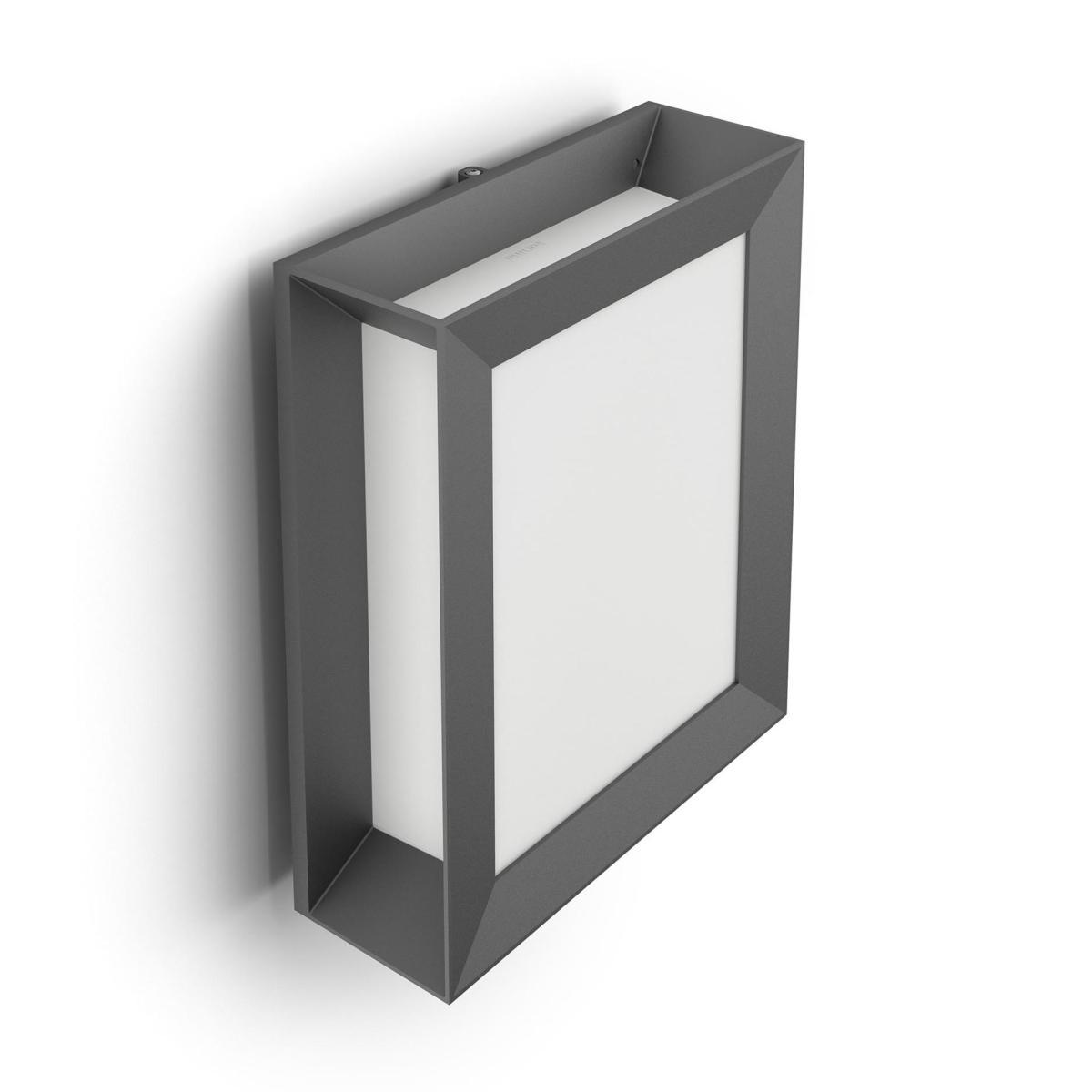 The Philips Karp LED outdoor wall light in anthracite grey suspends a large panel of diffused white light in an elegant frame of durable die cast aluminium. The LED technology integrated into this Philips lamp is a unique solution developed by Philips. It turns on instantly, enables an optimal light output and brings out vivid colours in your home. The warm white light will provide your garden or front porch with a wonderfully cosy ambience. IP44 for outdoor use; 600lm; 6W LED equivalent to 47W traditional. The LED bulb, delivered with this Philips LED lamp, will last up to 25,000 hours (which equals 25 years on the basis of an average use of 3 hours/day with at least of 13,000 on/off switching cycles). Philips offers a 5-year warranty on the LED system, meaning the LED module and the driver in this lamp. Please note: To create a more innovative look, this light has been designed to incorporate the LED within it. The integrated LED is not replaceable but has a lifespan of up to 20,000 hours. LEDs use around 85% less energy than incandescent bulbs and will last up to 20,000 hours.