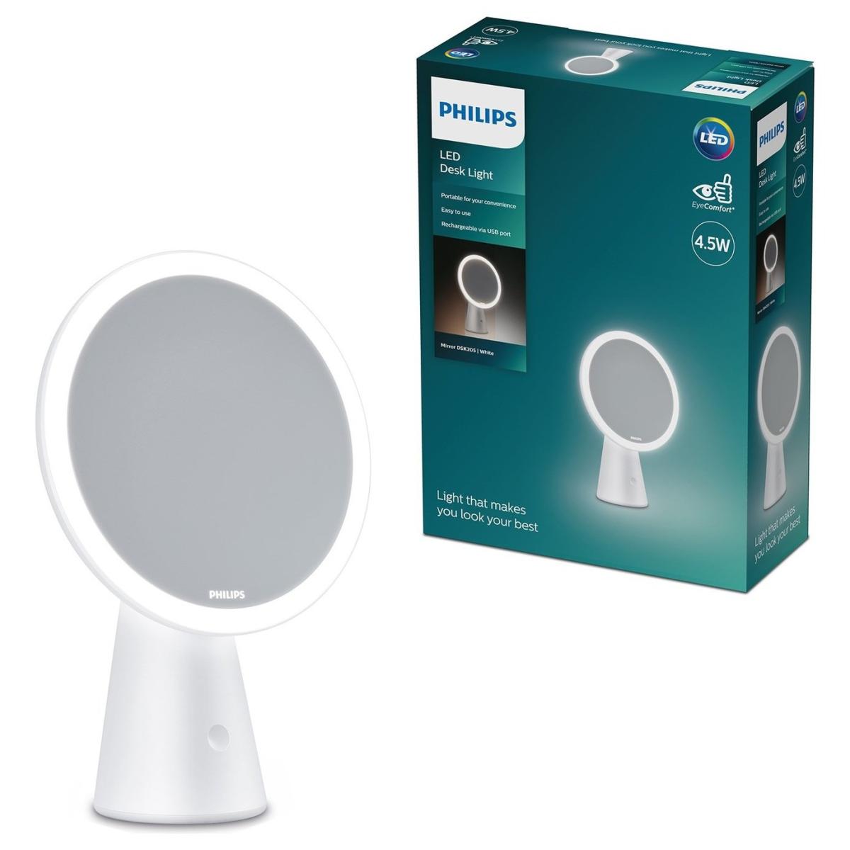 With its robust design and optimal performance, the Philips LED Performance desk light is the perfect luminaire that brings quality and brightness to any home space. Comfortable light that's easy on your eyes. SceneSwitch colour change. Comfortable LED light that's easy on your eyes. Dimensions: Overall size H28.2, W8.8, D19.5 cm. Diameter 8.8cm. Shade size H28.2, D8.8cm. Diameter of base 19.5cm. Cord length 1.5m. Bulb Information: Energy consumption/1000h (kwh): 0.9. Bulbs required 1 x. LED bulb(s)(included). Recommended maximum wattage: 4.5 watts. Dimmable LED bulb. LED bulb only. Colour rendering index 95. Rated luminous flux 60. General Information: Shade colour: white. Base colour: white. Shade material: metal and plastic. Base material: metal and plastic. USB charging. Push on/off switch. Not suitable for bathroom use. Minimal assembly. Product is mains powered plug in. This lighting product is a class 3 fitting. Manufacturer's 2 year guarantee.