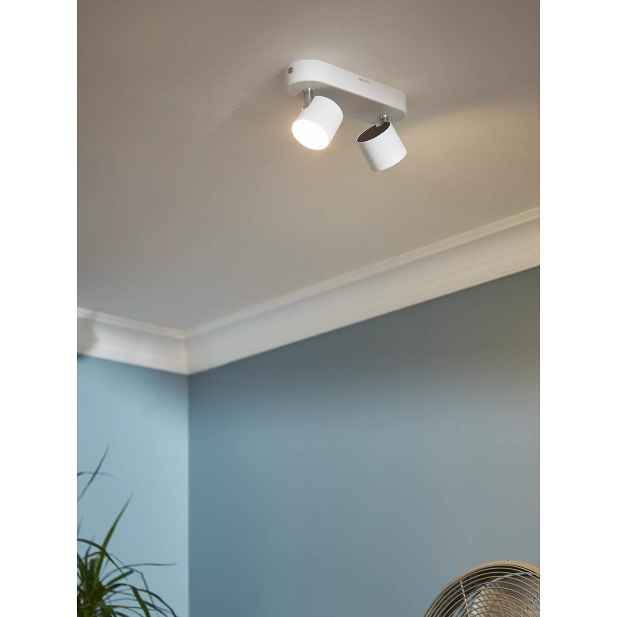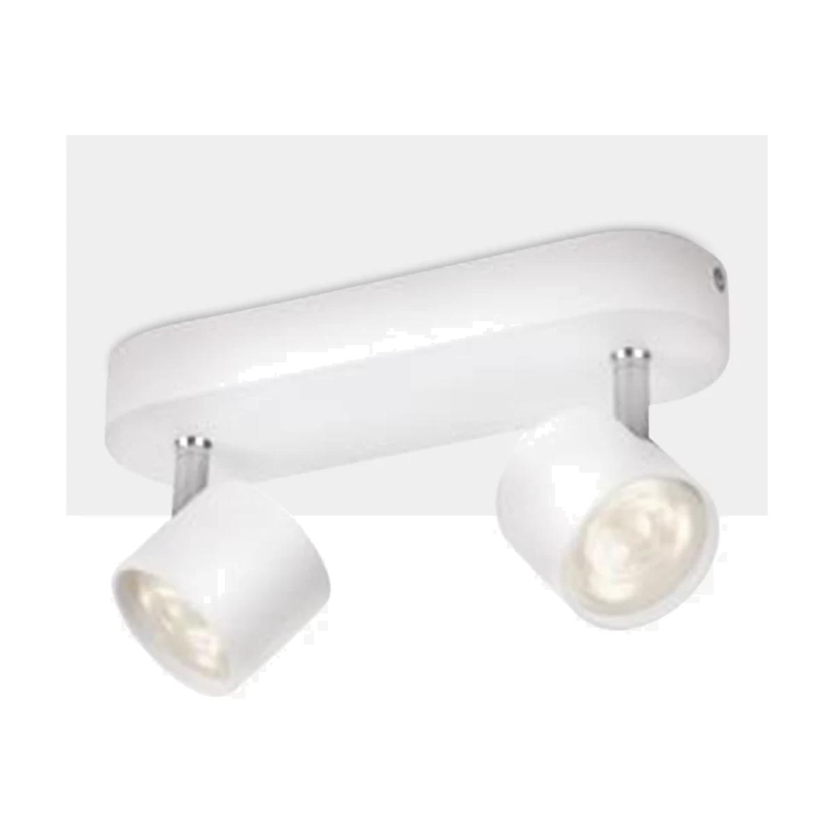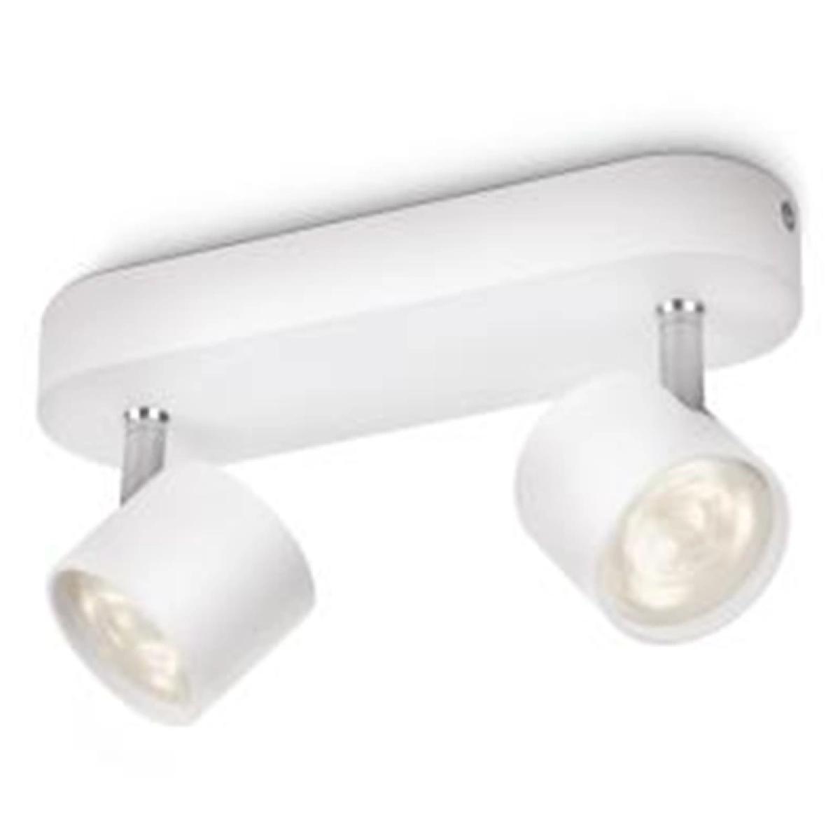 Complete with the latest LED technology, the Star Double Spotlight from Philips will introduce a warm white light into your space. Its minimalist, contemporary profile features adjustable spot heads that allow you to cast light exactly where needed. The integrated LEDs in this light conserve energy compared to traditional light sources, making it kinder to the environment and more effective for your electricity bills. Place yours in bedrooms or living spaces for an effective home lighting solution. Worth Knowing To create a more innovative look, this light has been designed to incorporate the LEDs within it. These LEDs are not replaceable but have a lifespan of up to 30,000 hours. LEDs use around 85% less energy than incandescent bulbs.