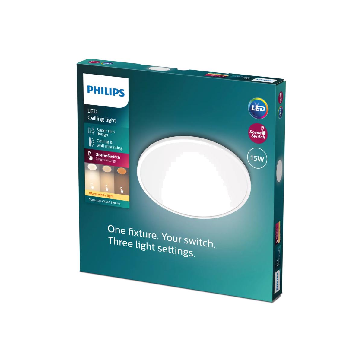 Philips Superslim CL550 LED Functional Flush Ceiling Light, White