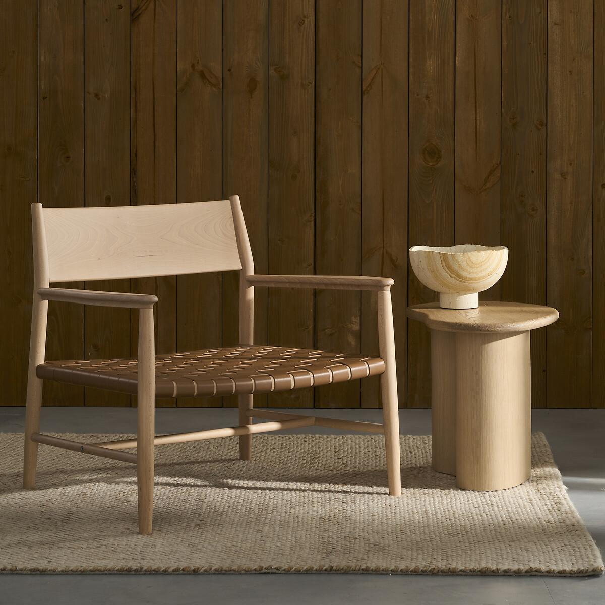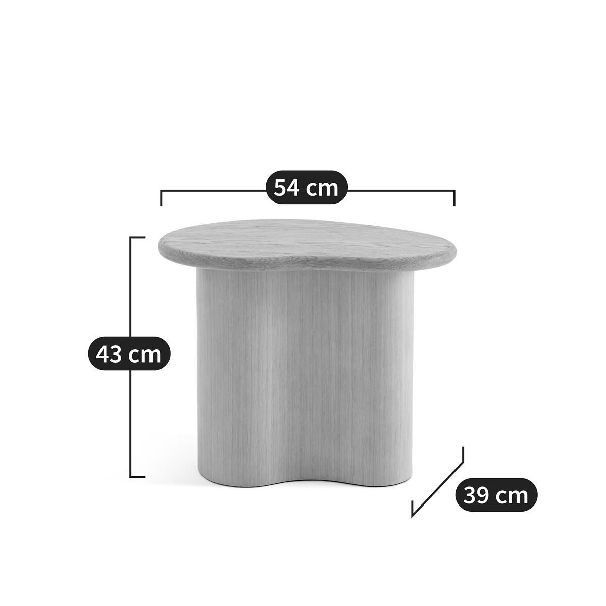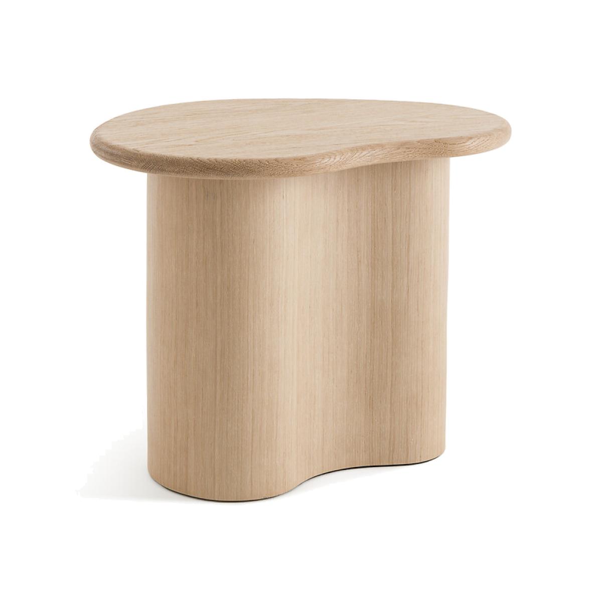 With flowing curves and a sculptural form, the Phlu end table is inspired by nature. The crinkled top is made from solid sanded oak with a raised feel. Combined with the Phlu coffee table, the two pieces of furniture form an elegant duo. Product Details • FSC® Mixed solid sandblasted oak top • Base in MDF sanded oak veneer certified FSC® Mixed • Polyurethane varnish finish. Quality Info • Wood is a living material. The differences in shades, grains and knots reinforce its character and authenticity.. Over time it may crack slightly. It is a process caused by variations in temperature and humidity. Dimensions • Length: 54cm • Height: 43cm • Depth: 39cmDelivery:. Sold pre-assembled. Available for home delivery. • WOOD FROM MORE SUSTAINABLY MANAGED FORESTS AND CONTROLLED SOURCES. FSC® Mix wood contains at least 70% FSC® certified and/or recycled wood, the remainder being FSC® controlled wood. Dimensions and weight of parcel • 1 parcel • L64 x H50 x D48cm. 22kg