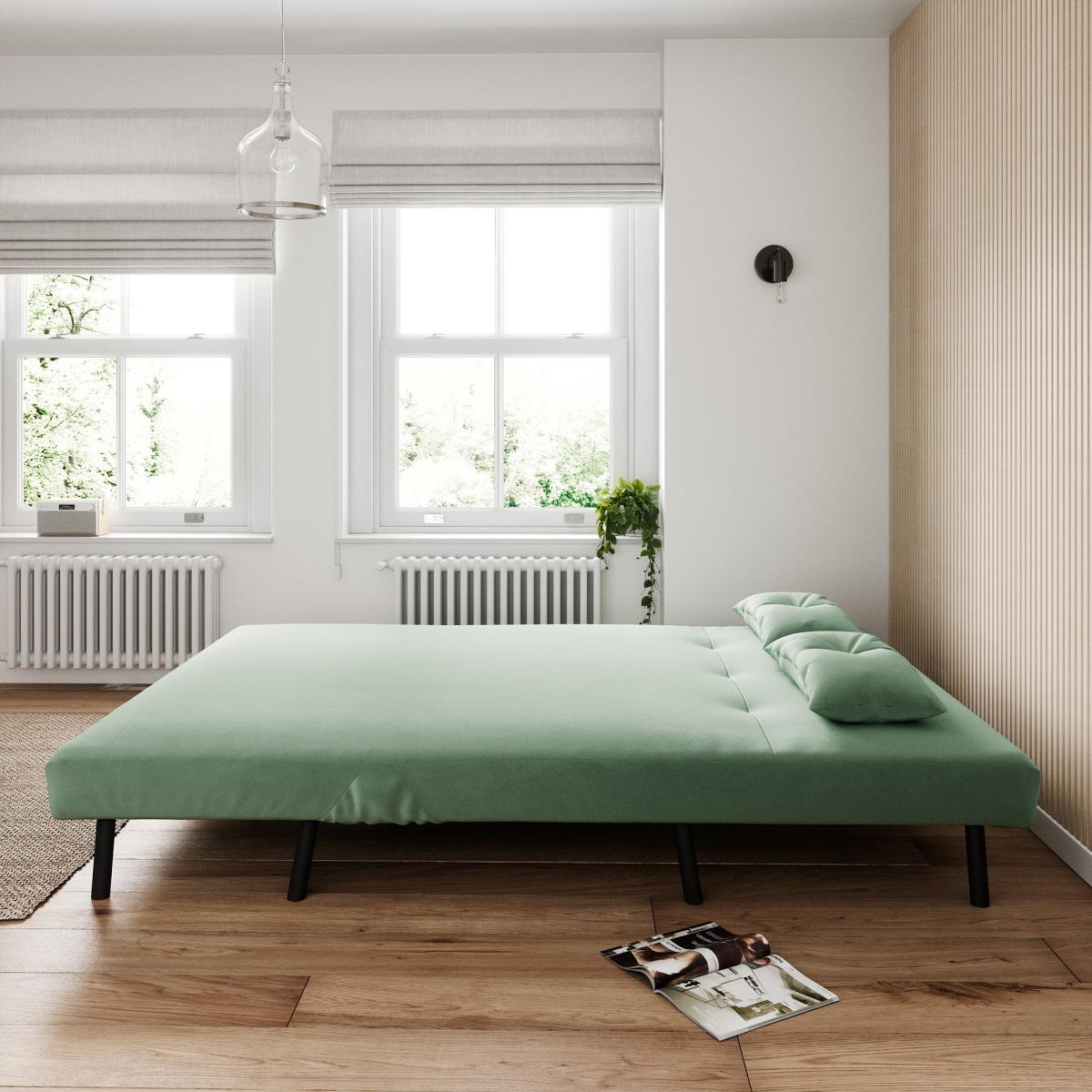 * Double sofa bed* Luxurious Velvet fabric* Ideal for small spaces With its new and improved construction, this sofa bed promises enhanced comfort for both seating and sleeping. Wrapped in soft velvet fabric, it exudes a stylish allure, effortlessly blending into any home space. Whether placed in a cosy corner or as an accent piece, its adaptability shines. Need an extra sleeping spot for overnight guests? This chair smoothly transforms into a comfortable sleeping space, ensuring your visitors enjoy a restful night's sleep without compromising on style or convenience.