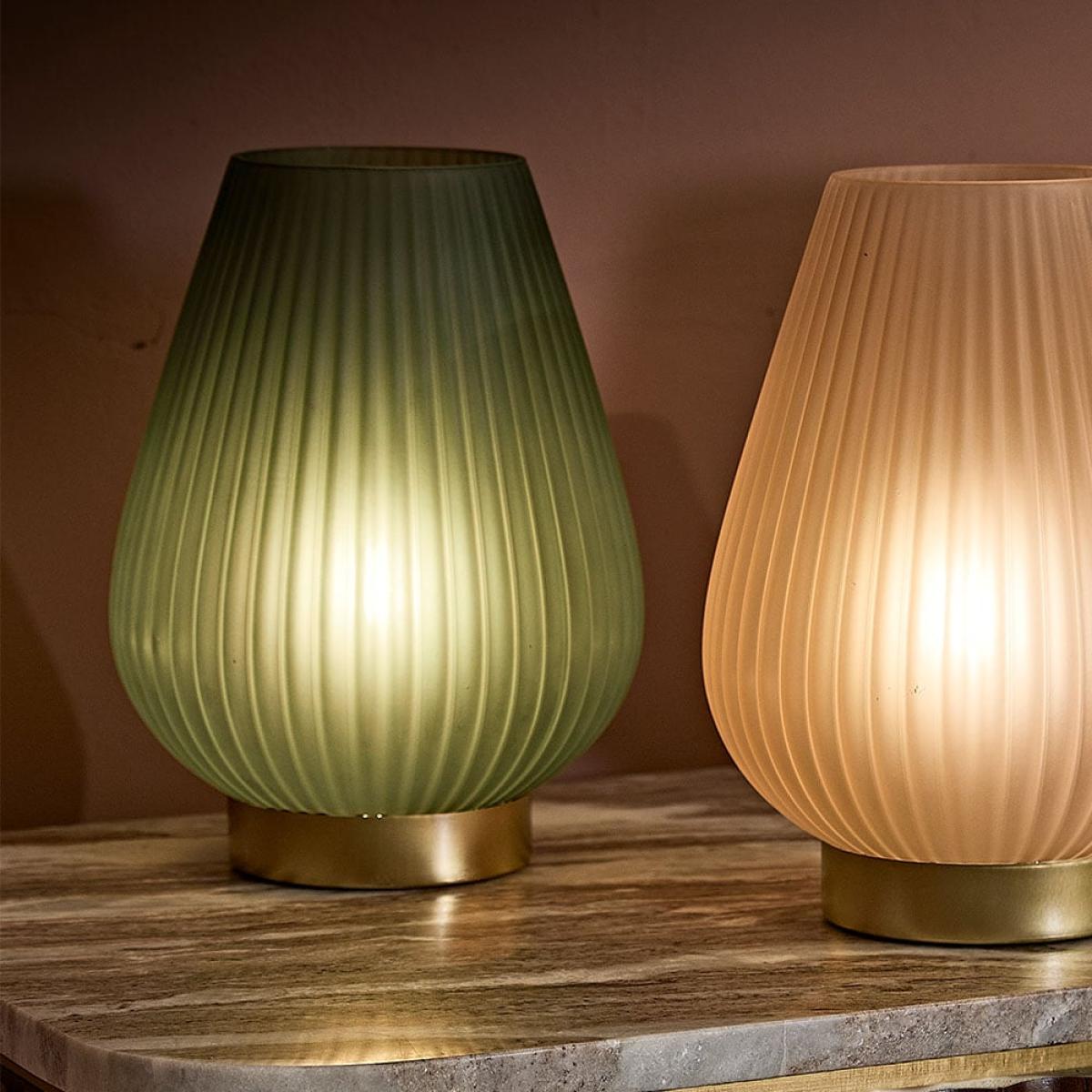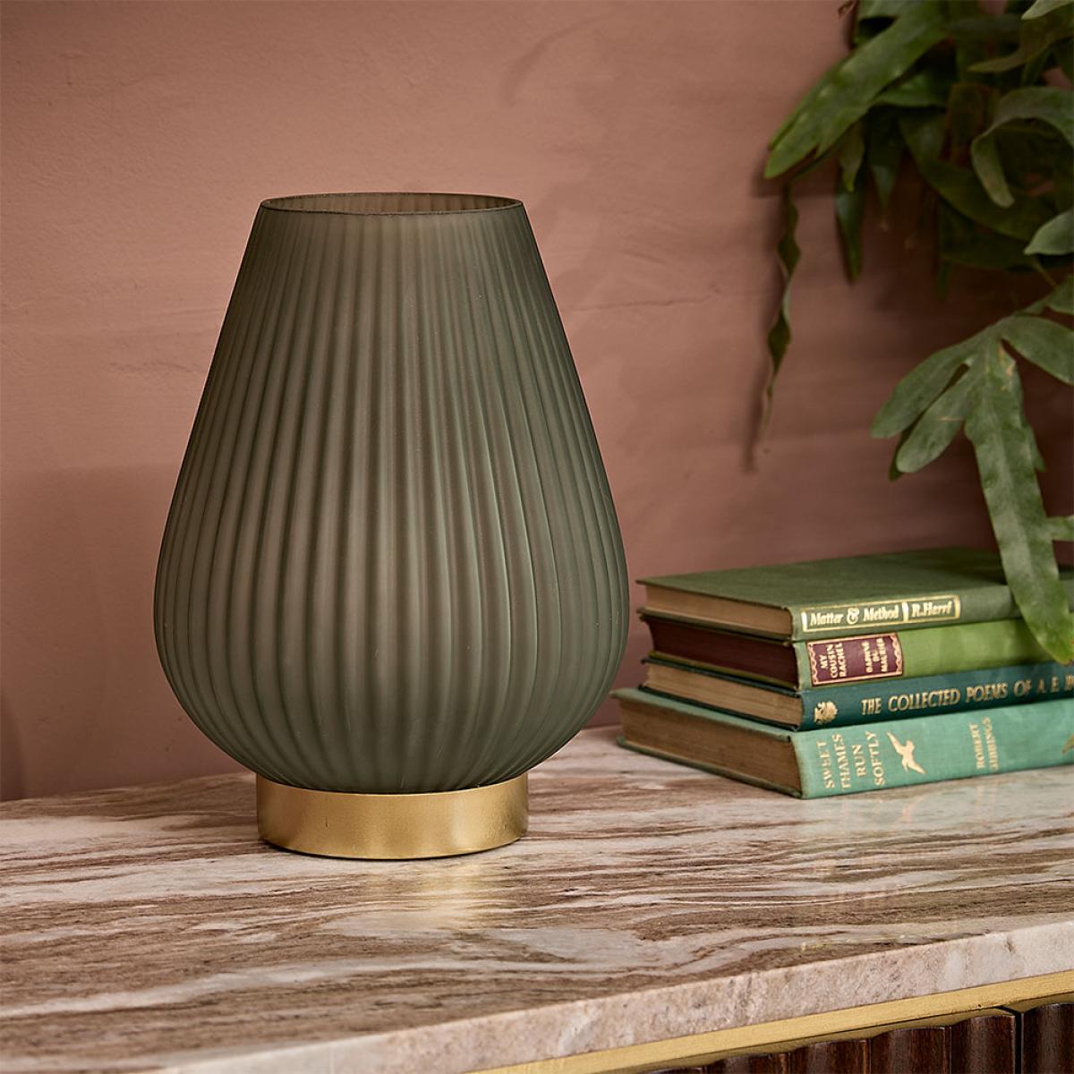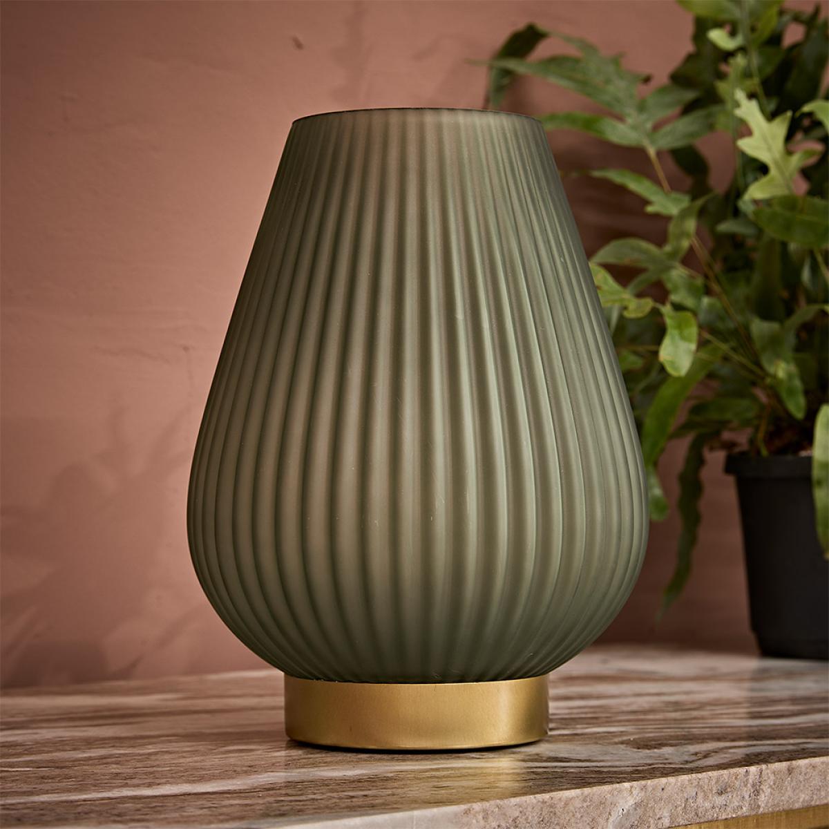 This decorative table lamp is on-trend with a fluted glass shade in a muted green colour and a luxurious brass base. Entirely portable, Phoebe offers an easy way to illuminate spaces without a power socket – simply add batteries. This light looks great when taking pride of place on a coffee table or nestled amongst books on shelving units, plus it’s perfect for taking outside when entertaining. Better still, it’s equipped with an energy-efficient LED bulb that casts a warm glow. Why not mix-and-match a couple of lamps in different colours for an eclectic look? Also available in champagne or grey colour.