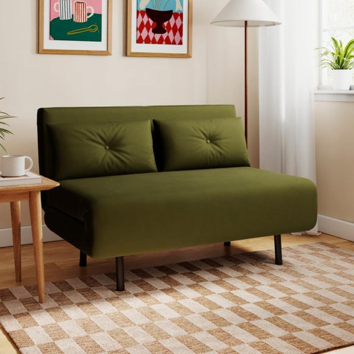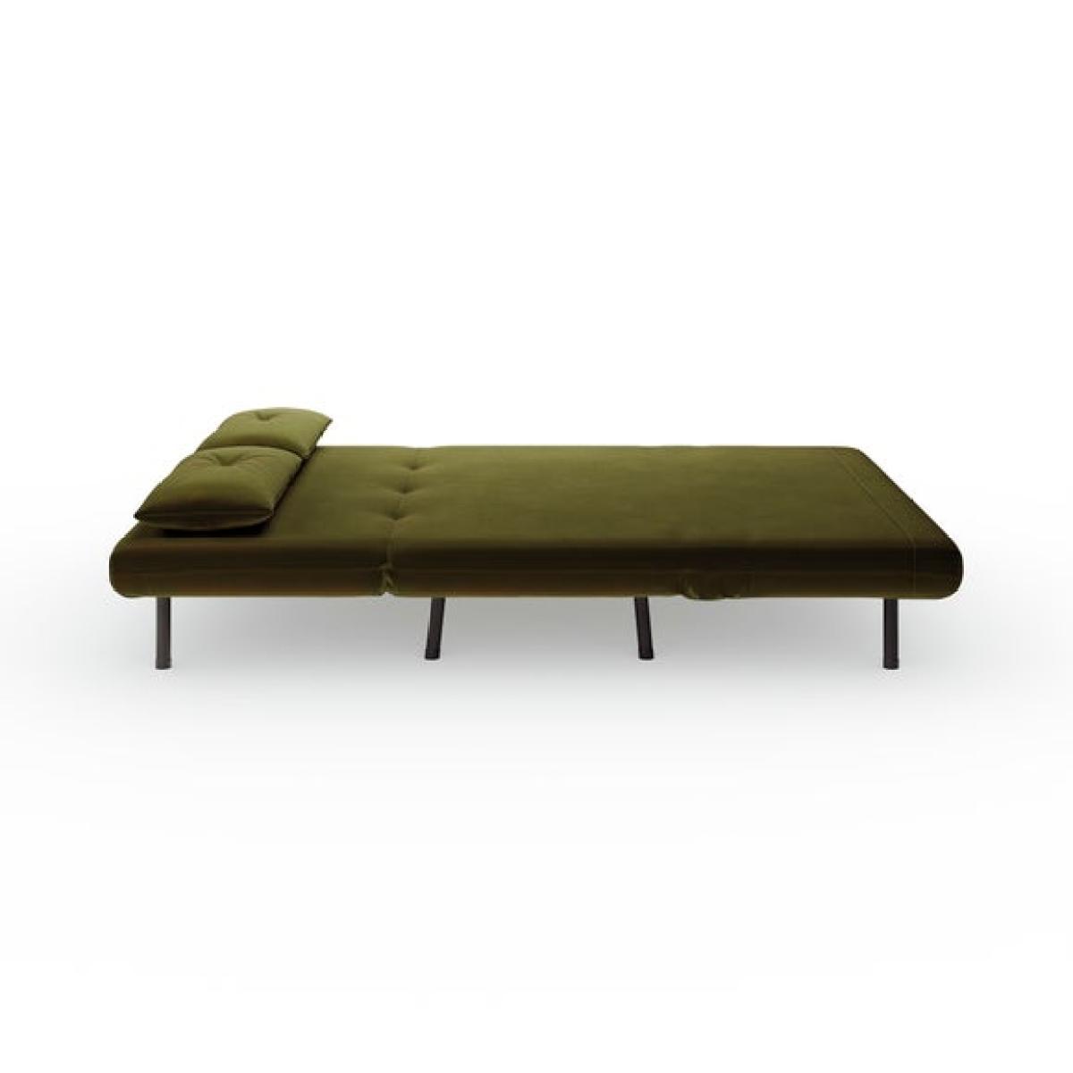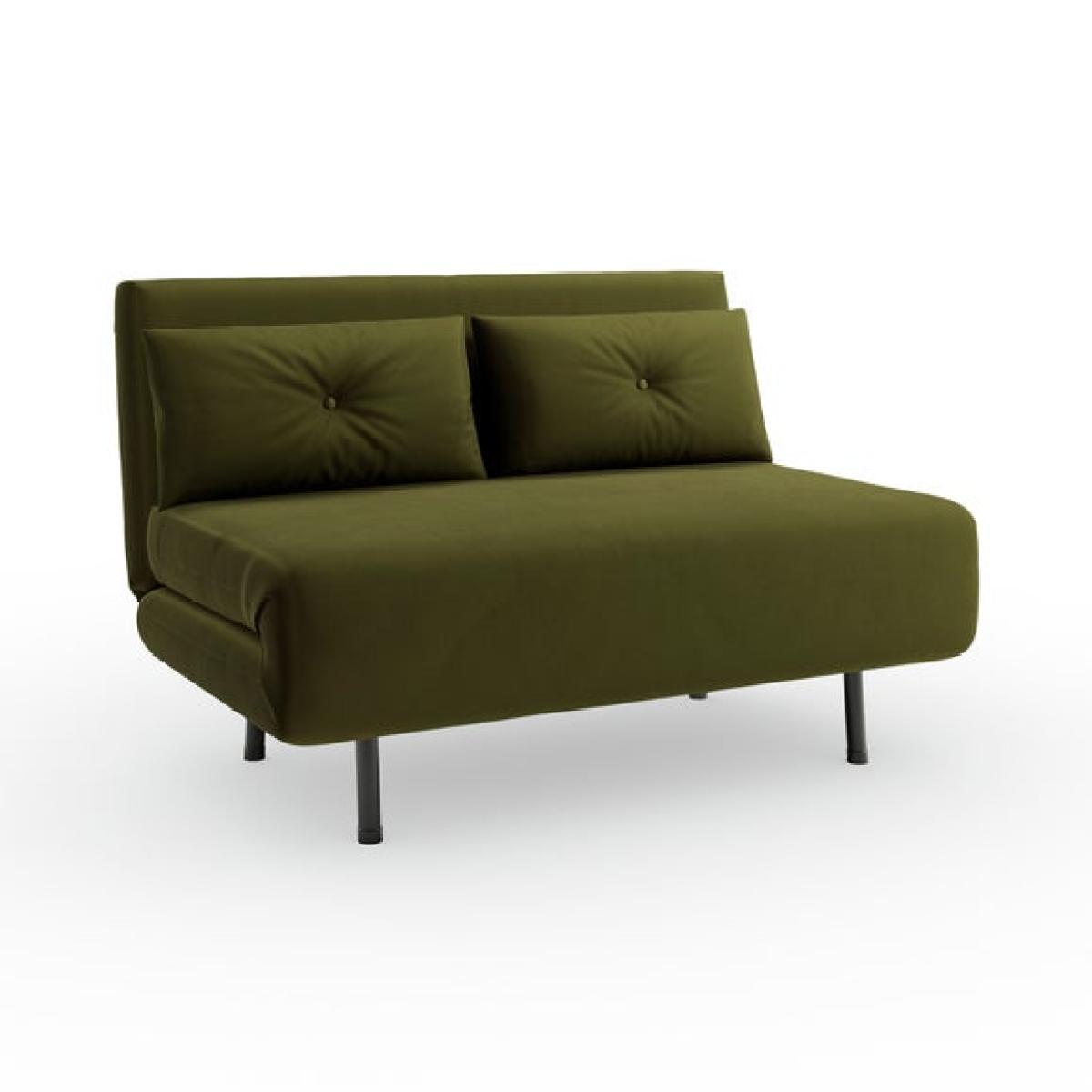 * Small double sofa bed * Folds out easily * Range of colours * Ideal for compact spaces This small double sofa bed is a great option for compact spaces, providing extra seating and a bed for guests. Luxurious velvet fabric in a choice of sumptuous colours and black metal legs makes this sofa bed look as good as it feels, also featuring a modern armless design and foam cushion fillings. Unfolding into a bed is easy - perfect for a comfortable sleeping space by night, and a cosy sofa seating solution by day.