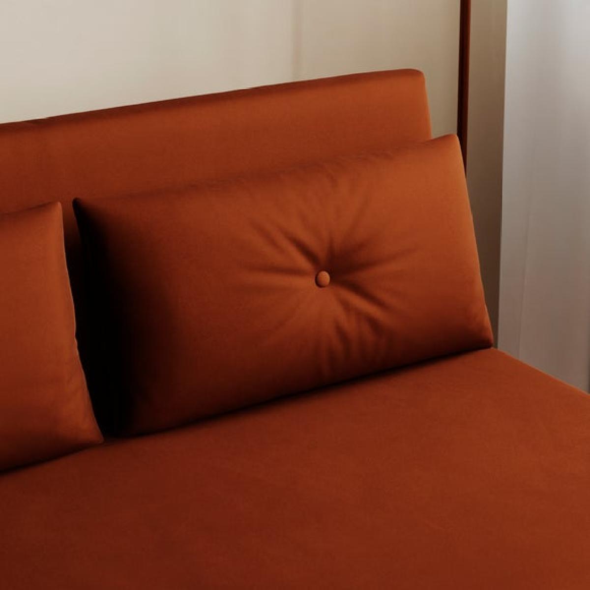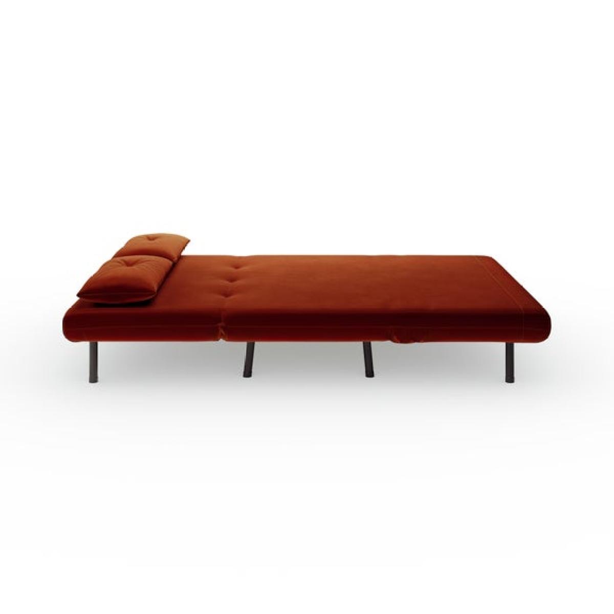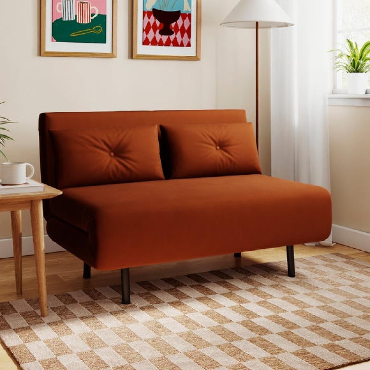 * Small double sofa bed * Folds out easily * Range of colours * Ideal for compact spaces This small double sofa bed is a great option for compact spaces, providing extra seating and a bed for guests. Luxurious velvet fabric in a choice of sumptuous colours and black metal legs makes this sofa bed look as good as it feels, also featuring a modern armless design and foam cushion fillings. Unfolding into a bed is easy - perfect for a comfortable sleeping space by night, and a cosy sofa seating solution by day.