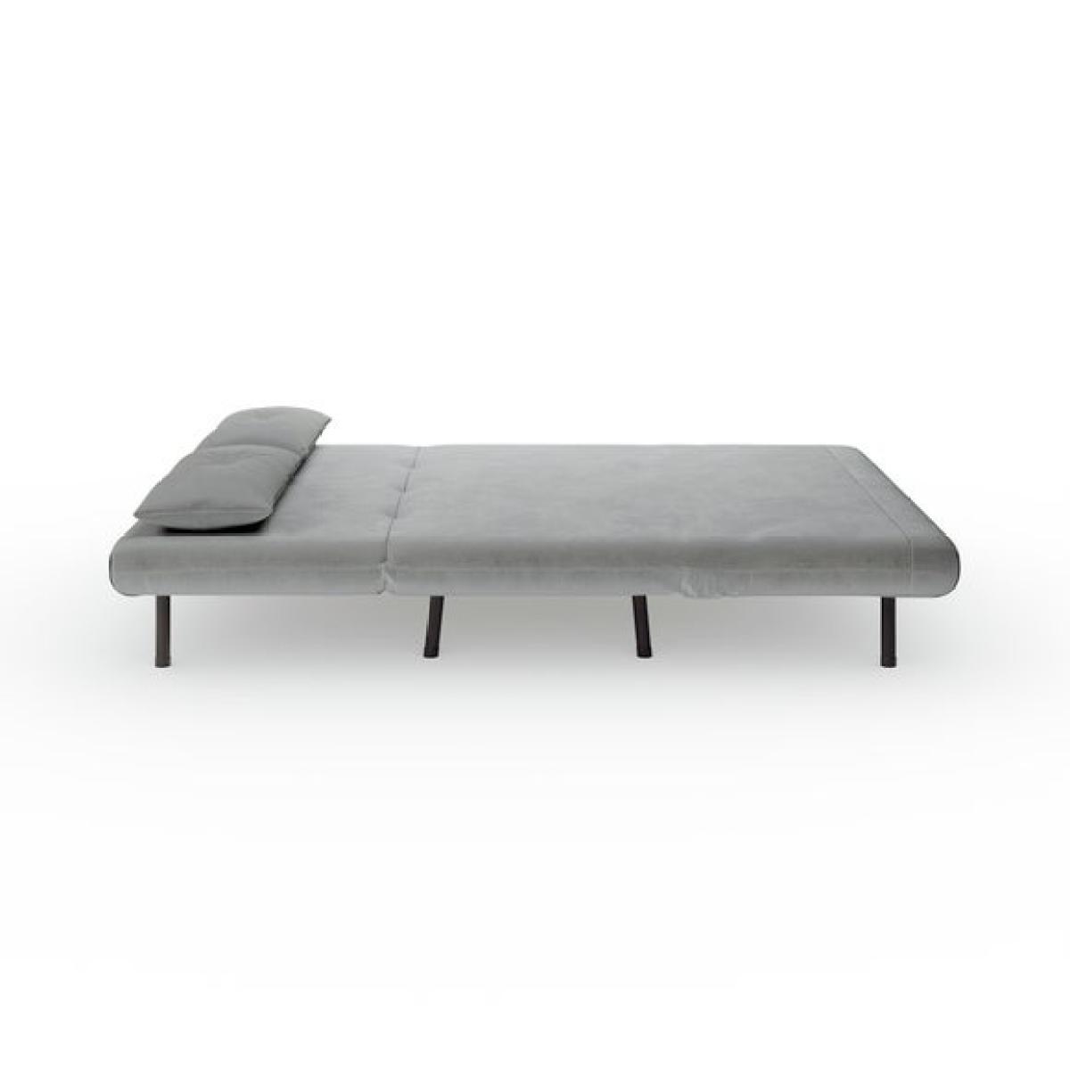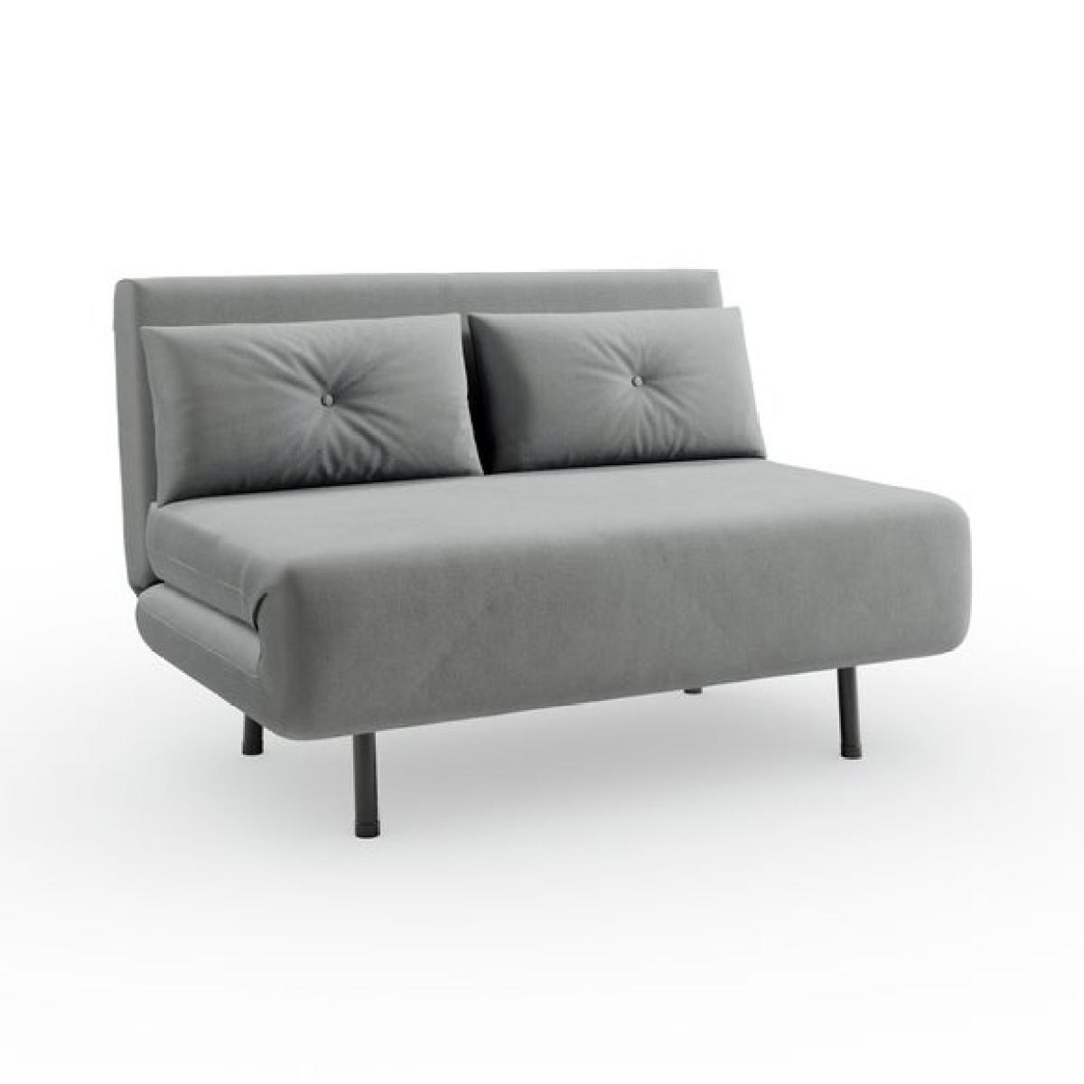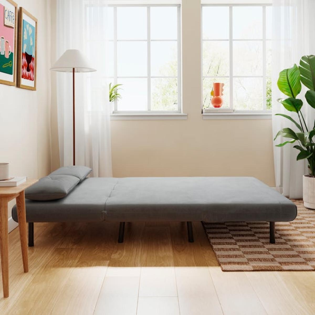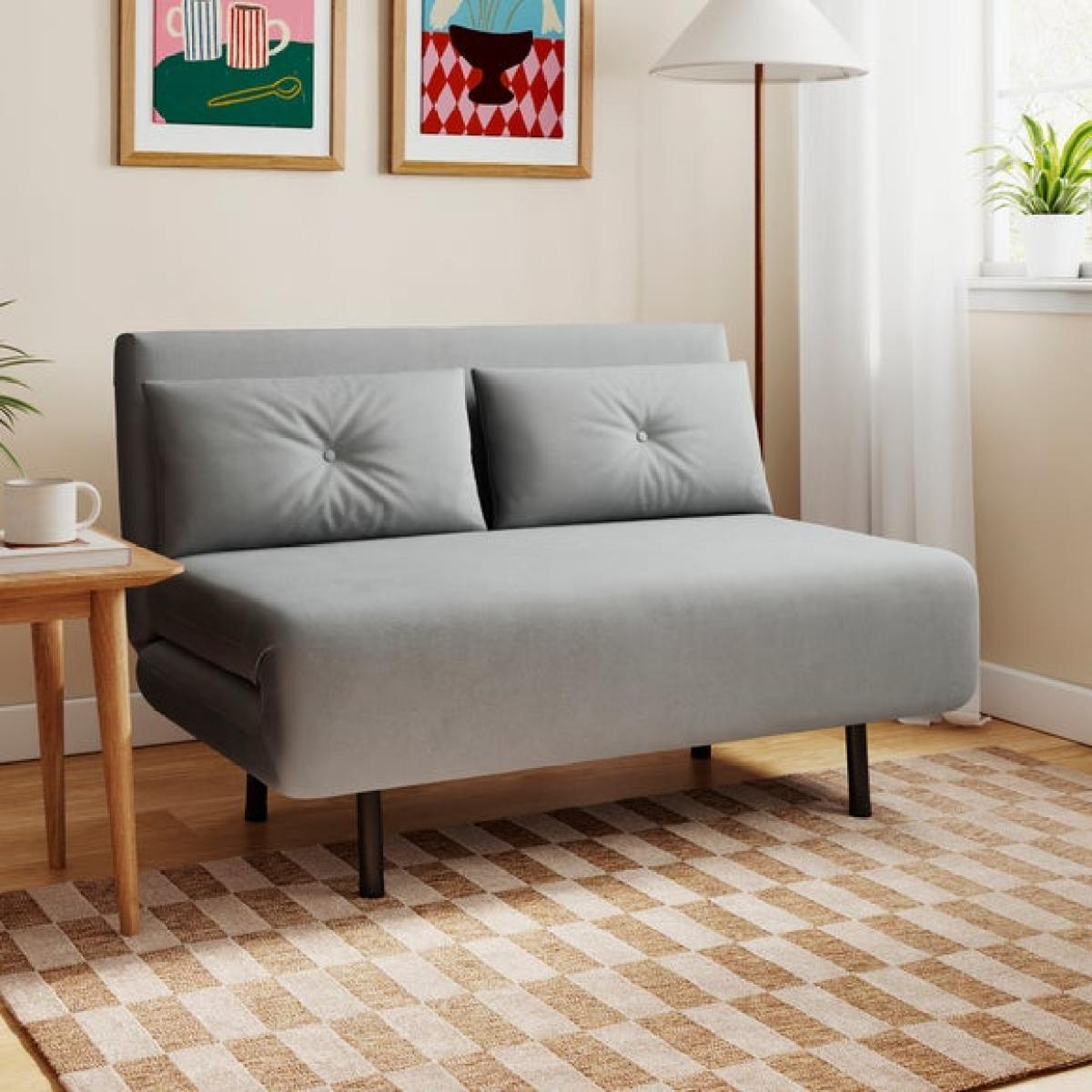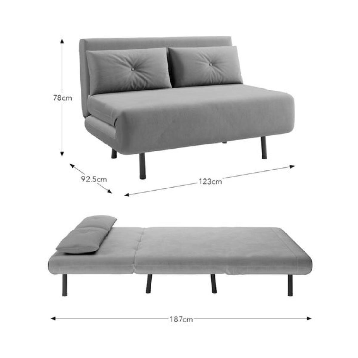 * Small double sofa bed * Folds out easily * Range of colours * Ideal for compact spaces This small double sofa bed is a great option for compact spaces, providing extra seating and a bed for guests. Luxurious velvet fabric in a choice of sumptuous colours and black metal legs makes this sofa bed look as good as it feels, also featuring a modern armless design and foam cushion fillings. Unfolding into a bed is easy - perfect for a comfortable sleeping space by night, and a cosy sofa seating solution by day.