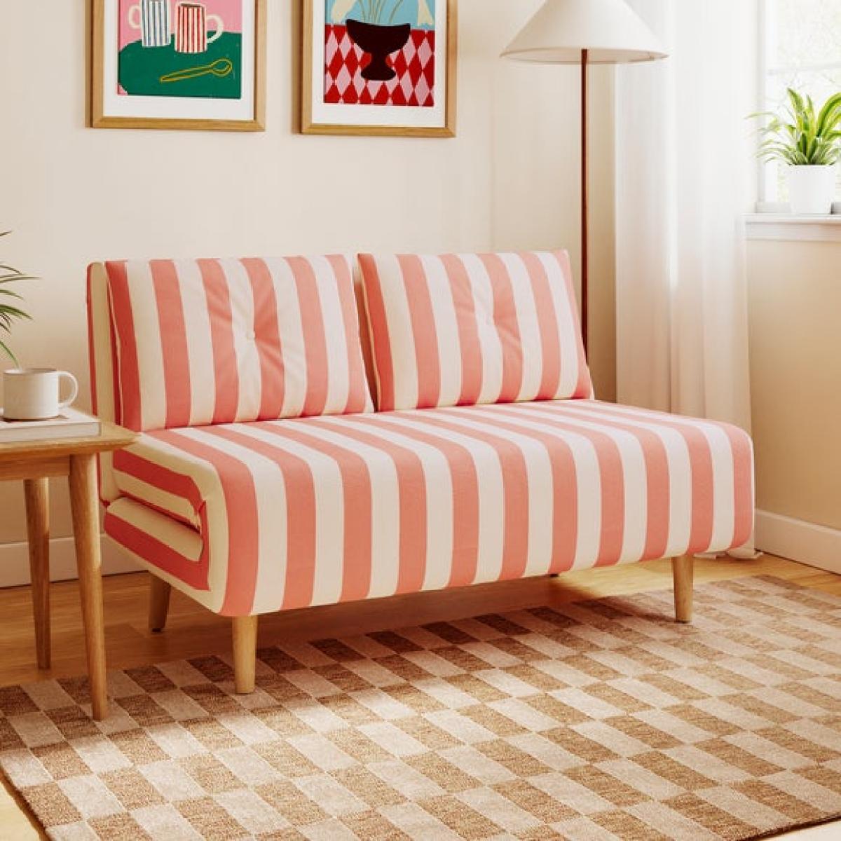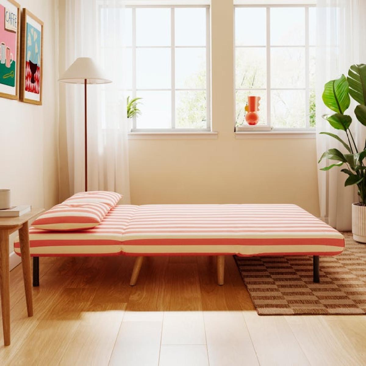 The Phoebe Woven Stripe Small Double Sofa Bed is a versatile piece that works well in both contemporary and retro-inspired interiors thanks to its playful striped pattern and warm colour palette. I love its compact size, making it perfect for smaller living spaces or guest rooms without sacrificing style. To make the most of it, consider pairing with neutral or pastel-toned accessories to keep the vibe light and fresh, or add throw cushions in complementary colours for extra comfort and visual interest. This sofa bed lends itself well to layered textiles and minimal accessories, making it a practical yet stylish addition that balances function with charm.