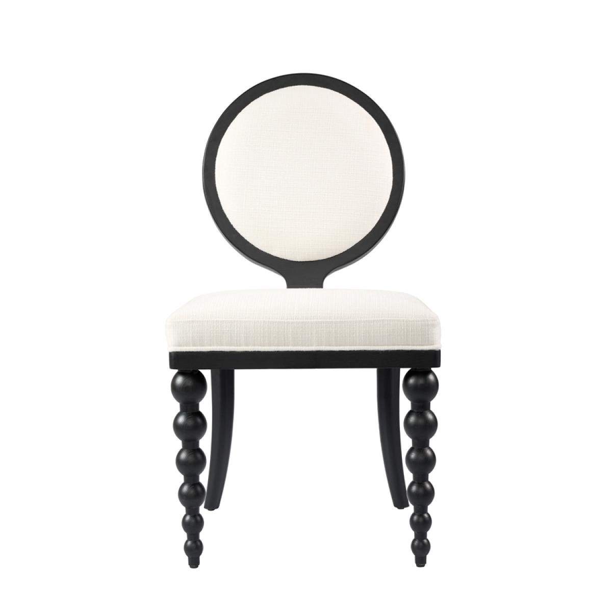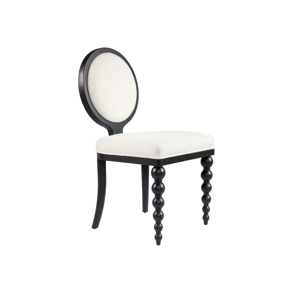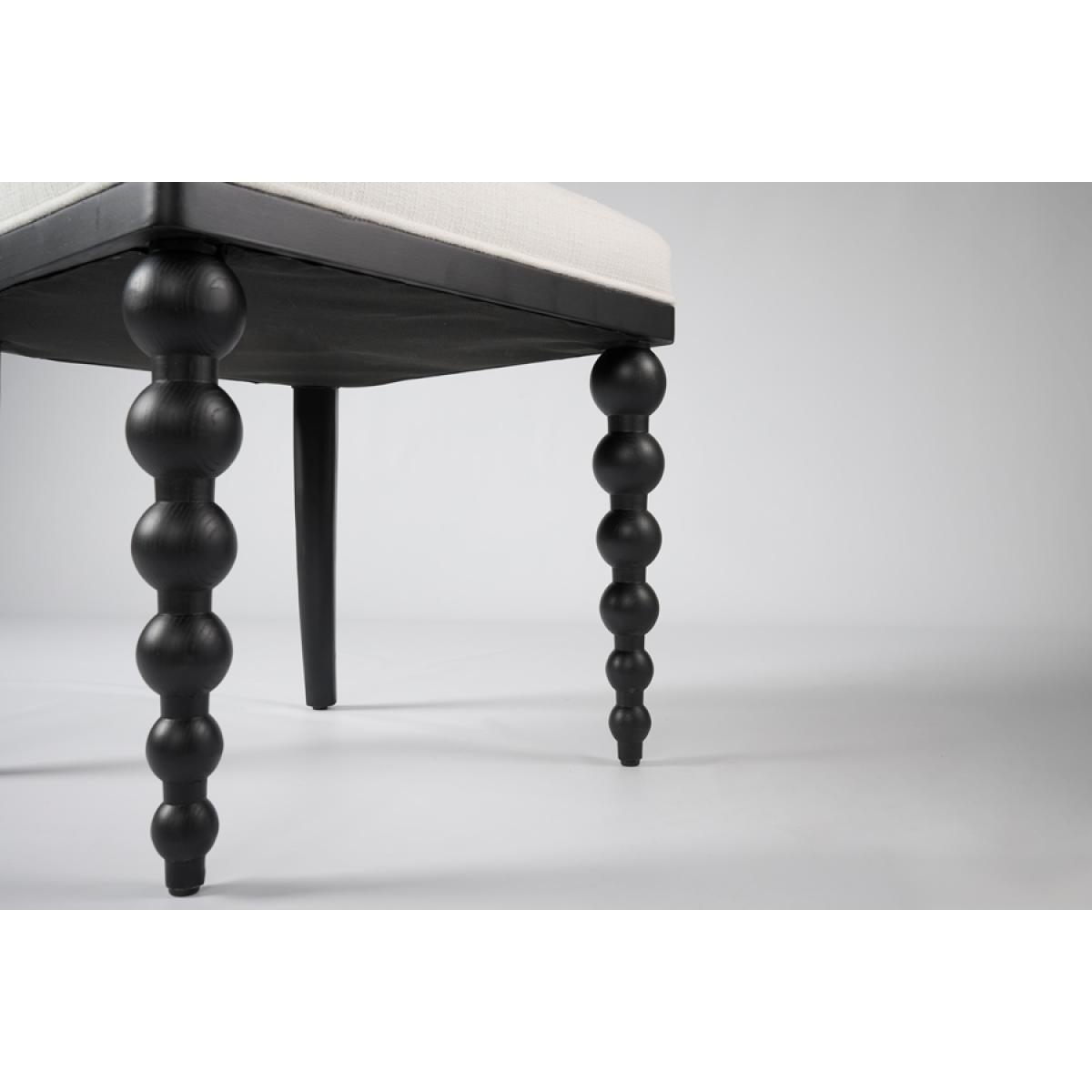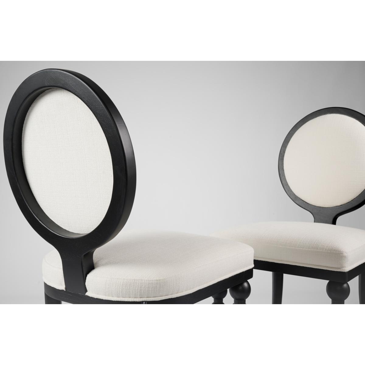 A contemporary and stylish take on an iconic French bistro chair. Expertly handcrafted from solid ash wood and finished with an elegant black satin stain. Featuring a distinctive and charming bobbin front leg design. Designed for comfort with a sprung seat and backrest, generously filled with deep padding. Upholstered in practical and durable linen effect fabric with a soft, tactile feel. Supplied fully assembled.