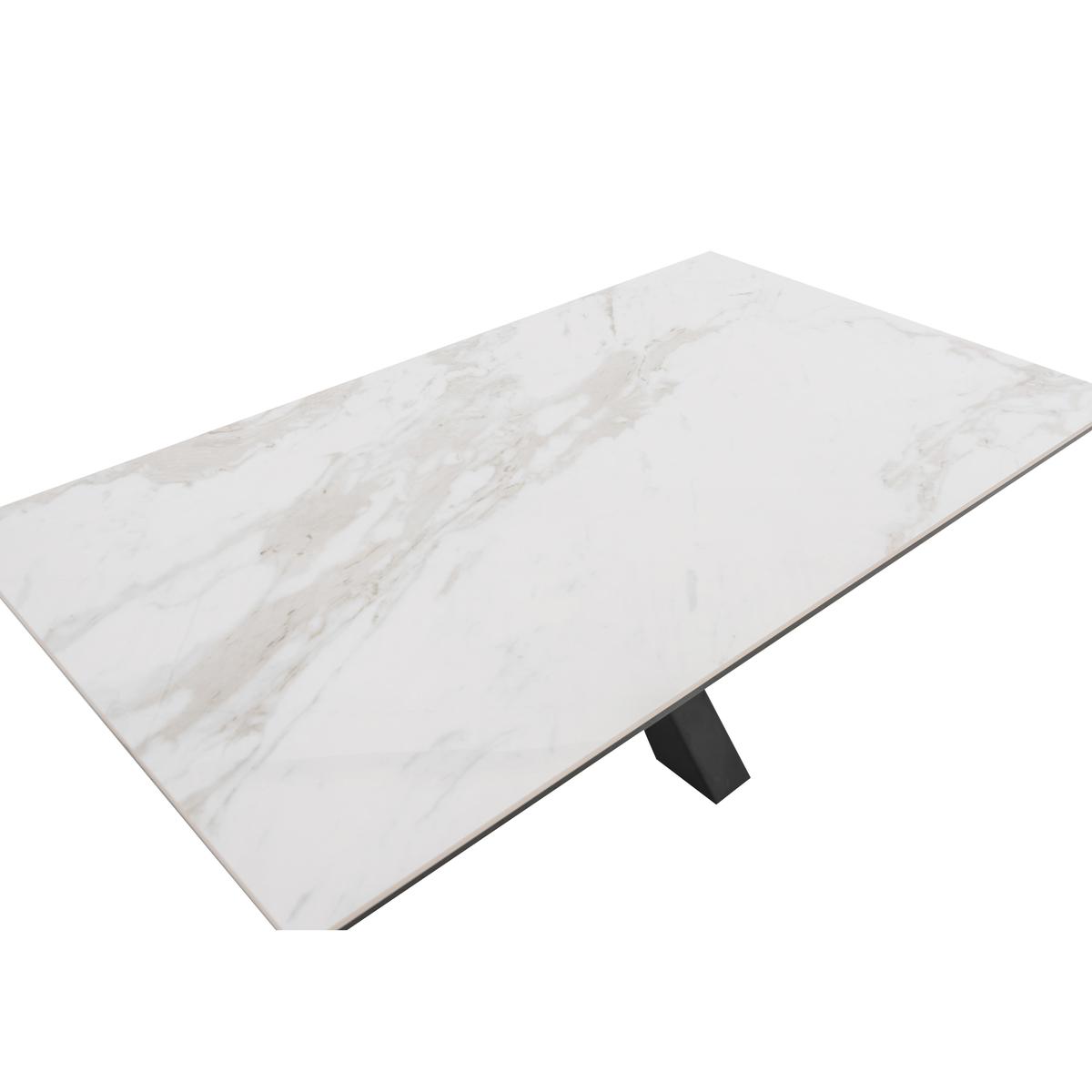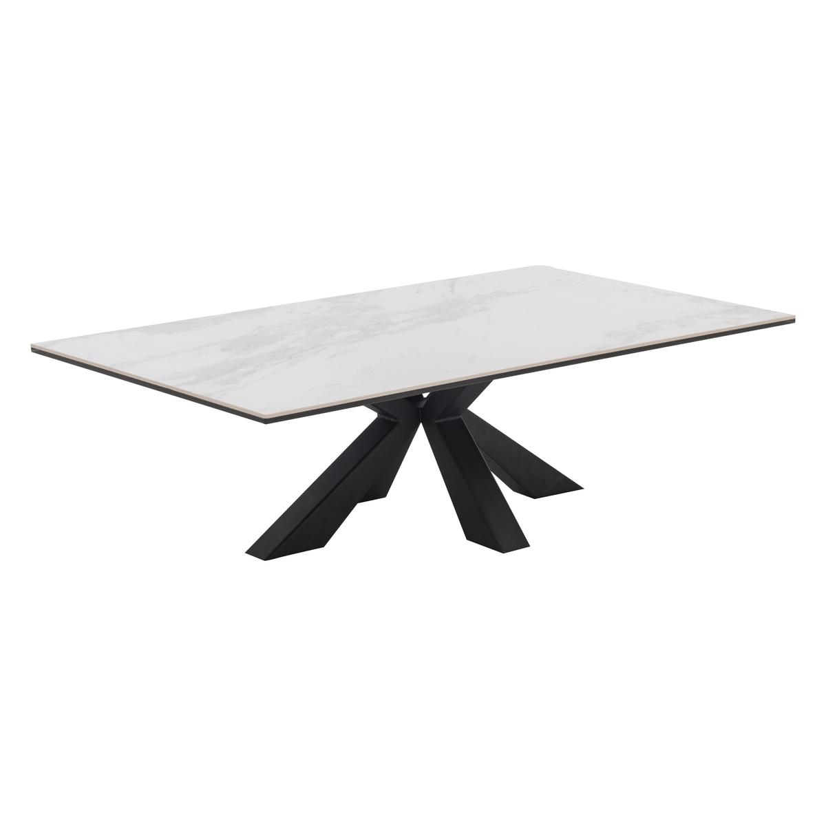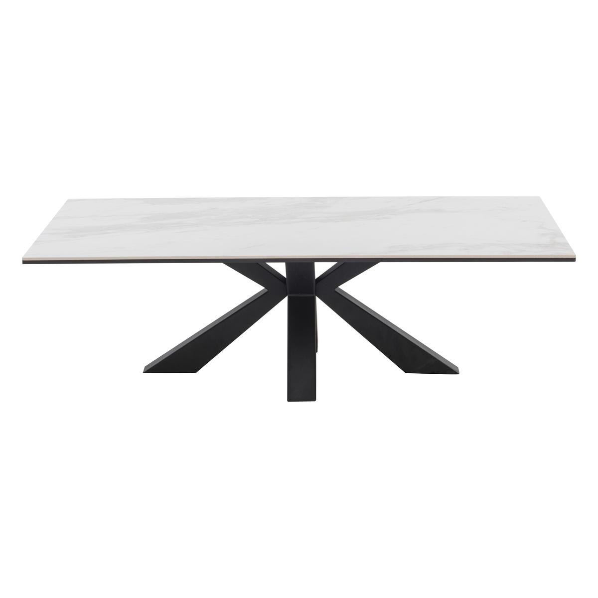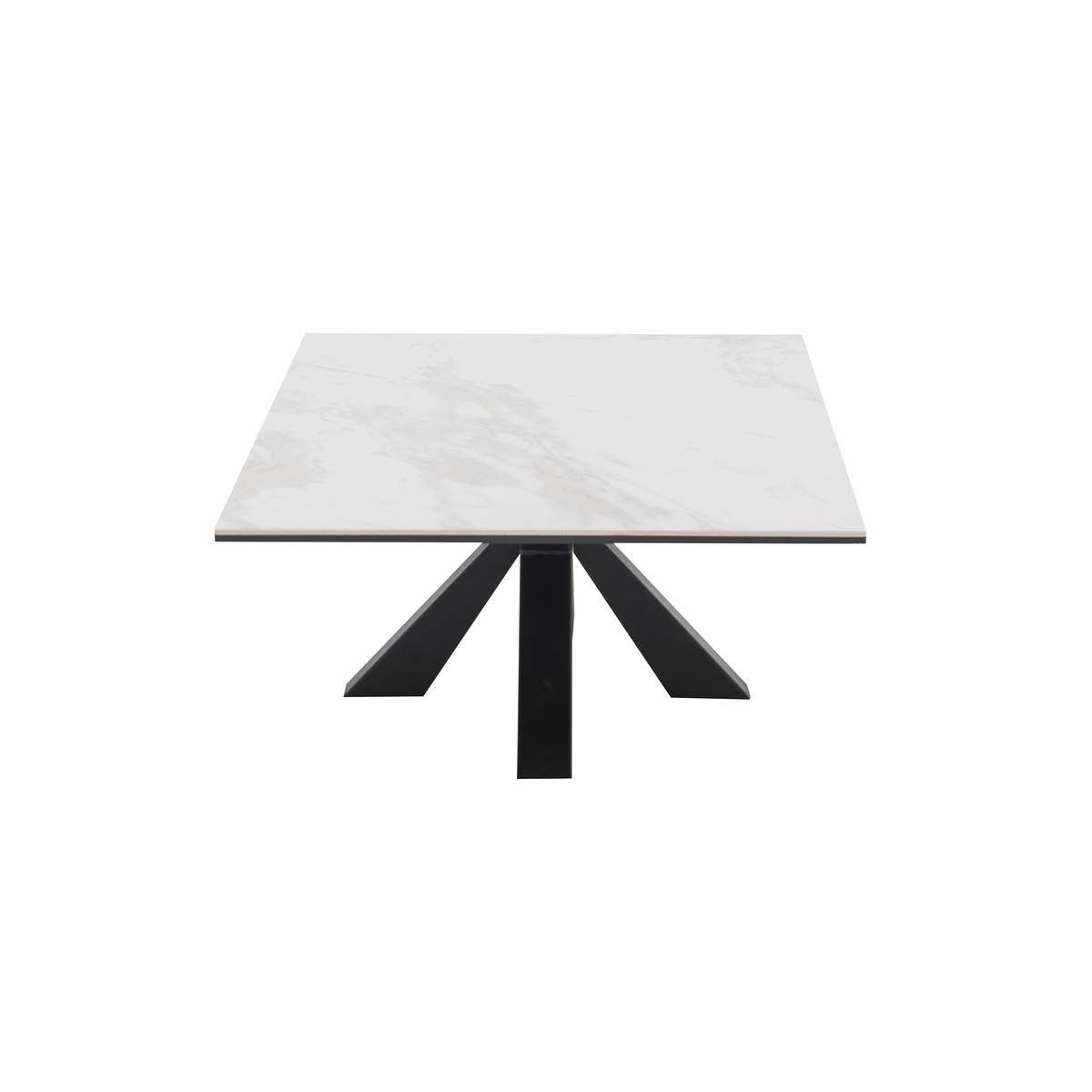 Everything about the Phoenix range makes a statement. The sunburst base of the extending dining table and occasional tables. The contrast between the smooth ceramic and the powder-coated metal. The juxtaposition of strong matt black and marble-effect white. It’s dramatic, stunning and very distinctive. Yet this contemporary range is also very much designed for everyday living and dining, thanks to the hardwearing ceramic-topped glass surfaces of the tables and sideboard. Comfortable, fully-upholstered faux leather dining chairs in two colourways complete this stylish contemporary range. Ceramic is water resistant, heat resistant and scratch resistant. It doesn’t dent or stain and is easy to clean. A Furniture Village exclusive. The Phoenix coffee table is a statement occasional piece that makes a great focal point in any living space. Bold and contemporary, it features a starburst-style base of black powder-coated metal. It’s a particularly eye-catching contrast to the white Carrara marble-effect top, made of ceramic mounted on glass. Ceramic is a very hardwearing material, perfect for a coffee table. So while it looks rather glamorous, this is most definitely a piece that you can enjoy using very day. It’s large enough to accommodate magazines, newspapers and TV remotes, or use it as the perfect display surface for your large, glossy coffee table books. The Phoenix coffee table is part of the Phoenix range of occasional and dining furniture. Pair it with the similarly-designed Phoenix lamp table, or the Phoenix sideboard for a monochromatic and stylish look. All pieces are exclusive to Furniture Village. Did you know?. Ceramic is highly durable, and heat and scratch resistant. Please note the dining table’s extension leaves are not pattern matched and leg adjustment may be required if flooring is uneven.