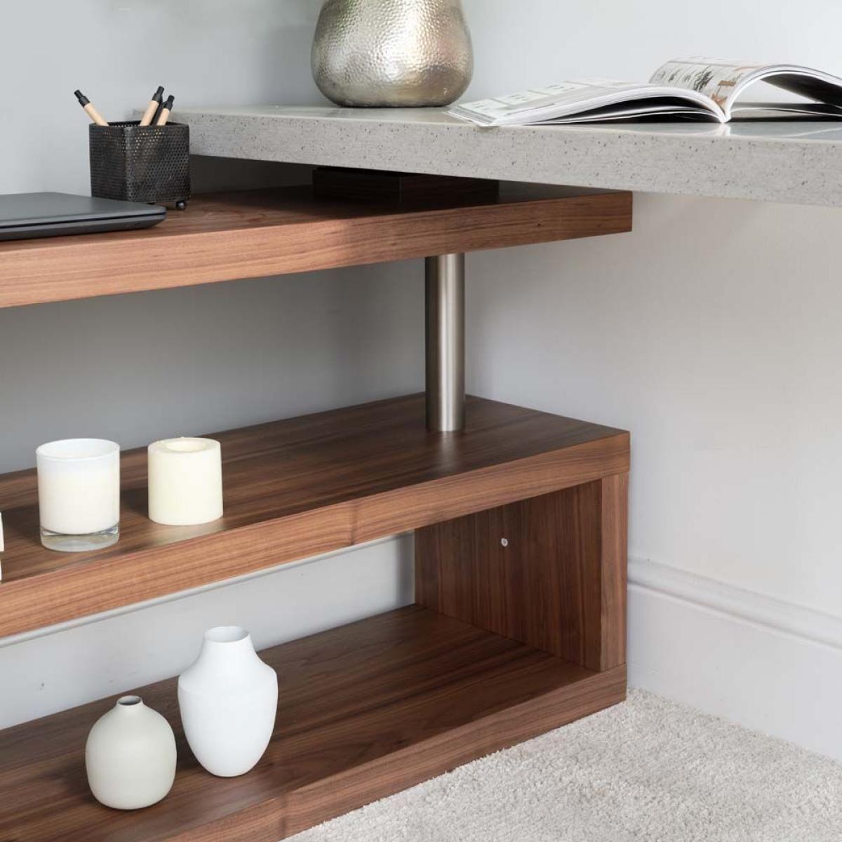 The Phoenix Corner Desk adds a new dimension to your office with its contemporary minimalist design. The desk folds closed and opens out for a flexible office solution offering shelves galore! Team with the rest of the Phoenix collection to complete the look.