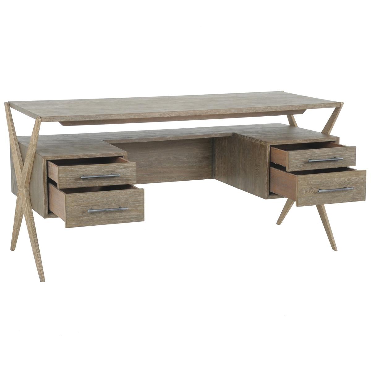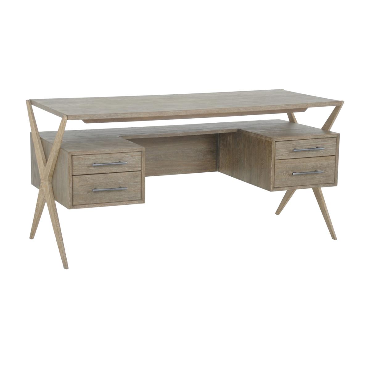 Design. Add a touch of style to your office space with the Phoenix Desk, Grey. Characterised by the unusual X-joint legs, and the light grey oak adding a clean and natural feel, this desk ensures interesting shape meets practicality perfectly. The Grey Phoenix Desk has plenty of desk space so you can comfortably work on your desktop or laptop, complete with 4 drawers to store away stationery, note pads and more.
