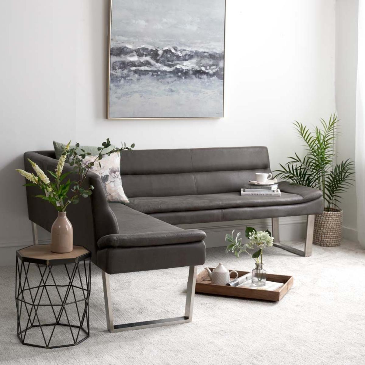 The stylish Phoenix dining corner sofa ensures there is room for the whole family. Made from PU leather meaning that it is easy to clean. Pair this kitchen corner bench sofa with the Phoenix dining table and bench to complete the set. Dimensions: H84cm W228cm L178cm. Stainless Steel base and legs