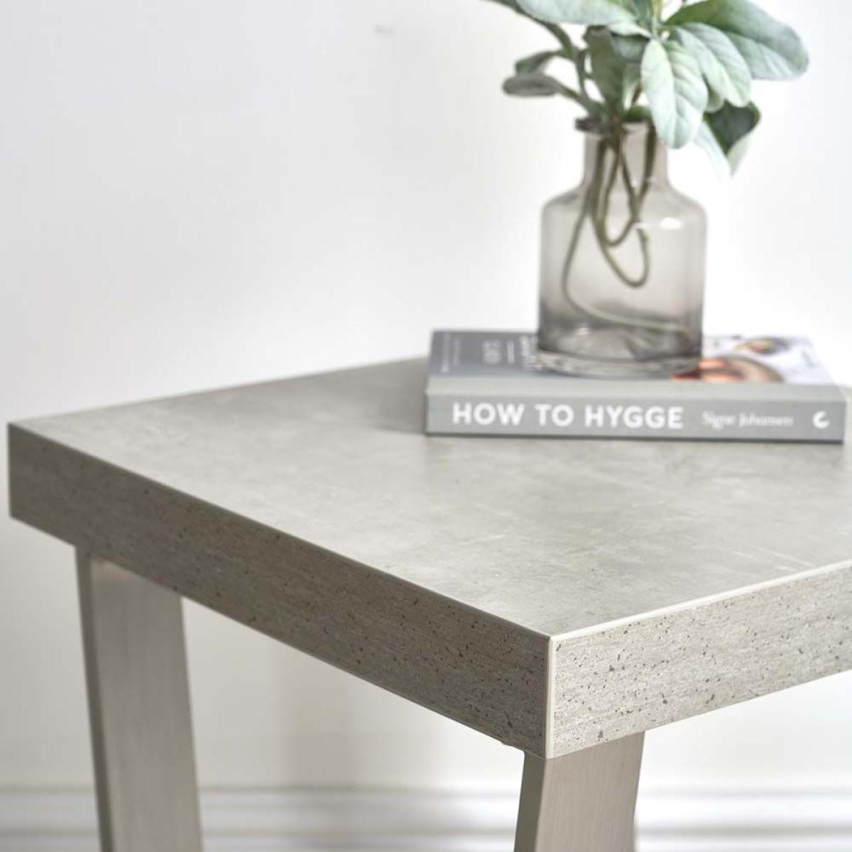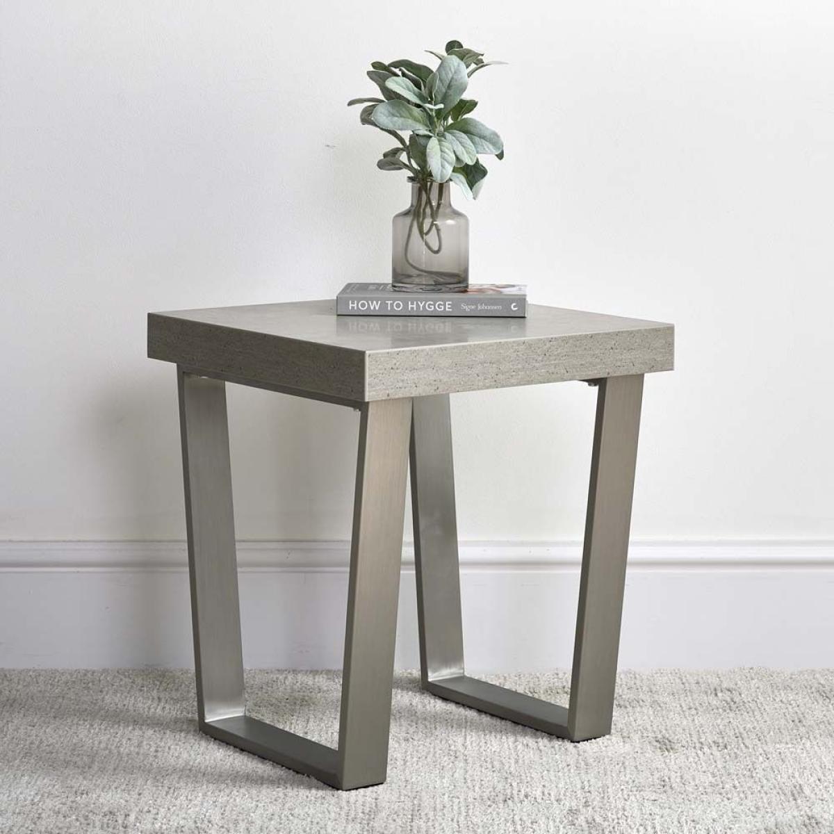 The Phoenix lamp table makes a simple but industrial styled addition to your living room. Made from stainless steel legs and a walnut top which has been painted to give it a concrete look. Team with the rest of the Phoenix collection to complete the look.
