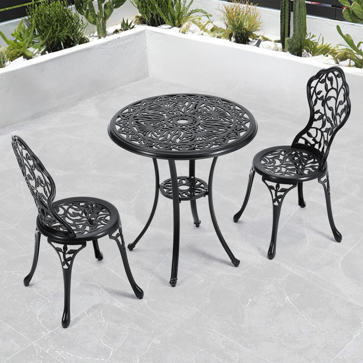 Complete your outdoor dining area with the Livingandhome Round Patio Dining Table. Crafted from strong, lightweight, and weather-resistant cast aluminum with a rustproof black finish, this table features a classic curved leg design and a decorative desktop. Plus, there is an umbrella hole in the centre which accommodates most standard umbrellas to keep you away from sun or rain. Enjoy this beautiful and functional table on your patio or deck.