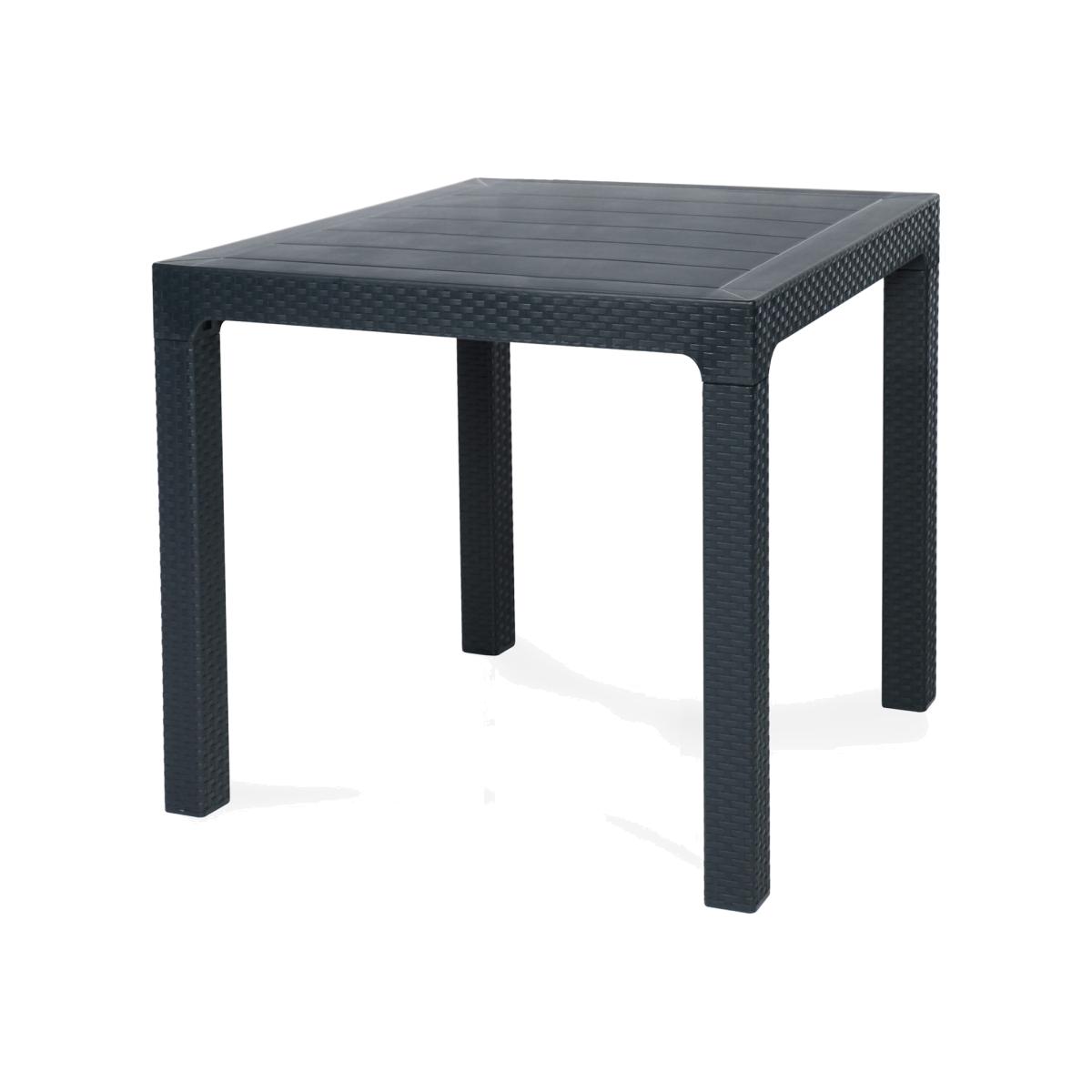 Phoenix Rattan garden dining table 80x80cm. Can seat up to 4 and is the colour Anthracite Grey. The height is 75cm. UV resistant and easy to keep clean. Detachable legs which makes easy to store.