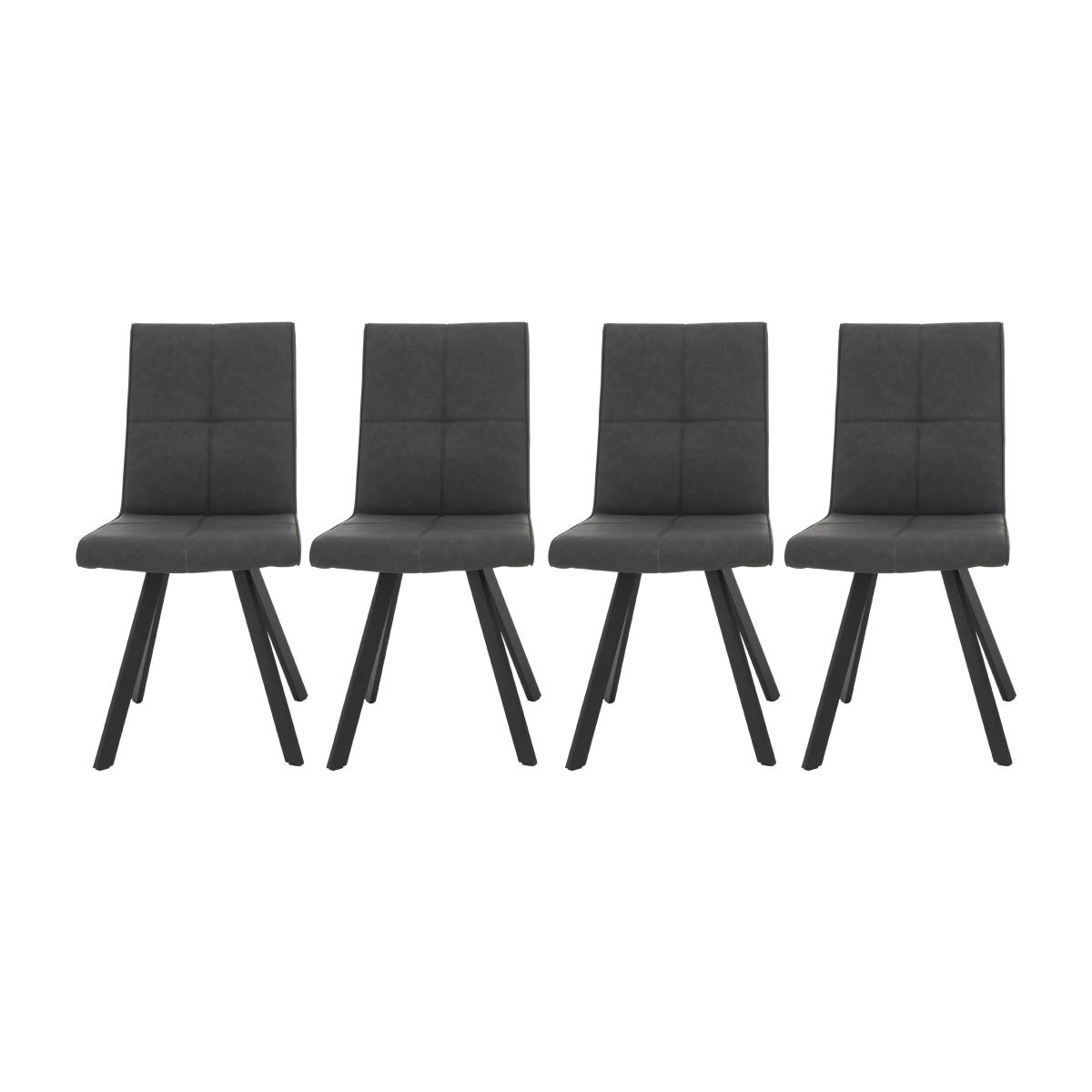 Everything about the Phoenix range makes a statement. The sunburst base of the extending dining table and occasional tables. The contrast between the smooth ceramic and the powder-coated metal. The juxtaposition of strong matt black and marble-effect white. It’s dramatic, stunning and very distinctive. Yet this contemporary range is also very much designed for everyday living and dining, thanks to the hardwearing ceramic-topped glass surfaces of the tables and sideboard. Comfortable, fully-upholstered faux leather dining chairs in two colourways complete this stylish contemporary range. Ceramic is water resistant, heat resistant and scratch resistant. It doesn’t dent or stain and is easy to clean. A Furniture Village exclusive. Whether you use your dining table for family meals or stylish dinner parties – or both – this set of four Phoenix dining chairs will rise to the occasion. Why you'll love it Set of 4 dining chairs is perfect for all dining occasions. Contemporary urban style. Nicely finished with geometric stitching and neat piping. Black powder-coated metal legs. Family-friendly easy-clean upholstery. In a choice of sophisticated colours. Only at Furniture Village. This set of 4 dining chairs is part of the Phoenix range. What you need to know Foam cushioning. Faux suede upholstery. Metal frame and legs. Also available as a pair, in a set of 6 and as part of a Phoenix dining set.