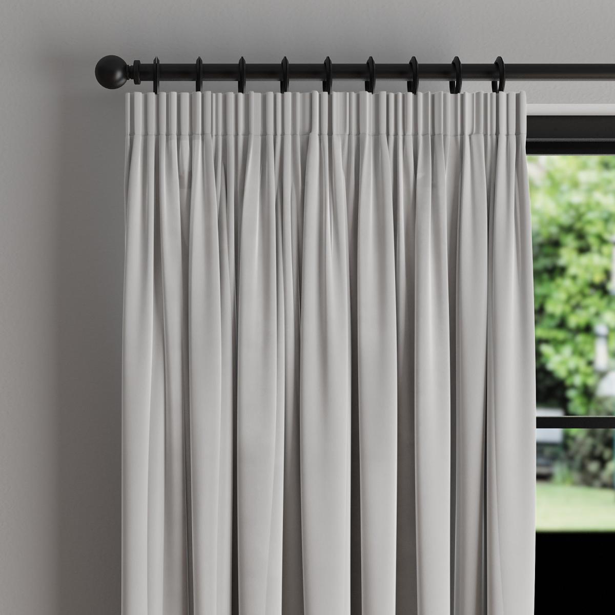 Phoenix Velour Silver Thermal Pencil Pleat Curtains Silver