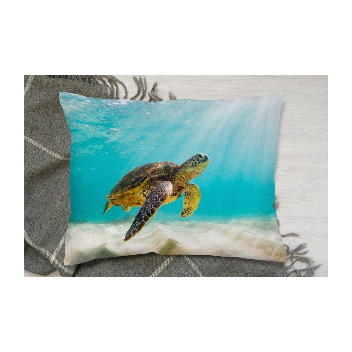 Photo Of Sea Turtle In The Galapagos Island Cushion - Blue
