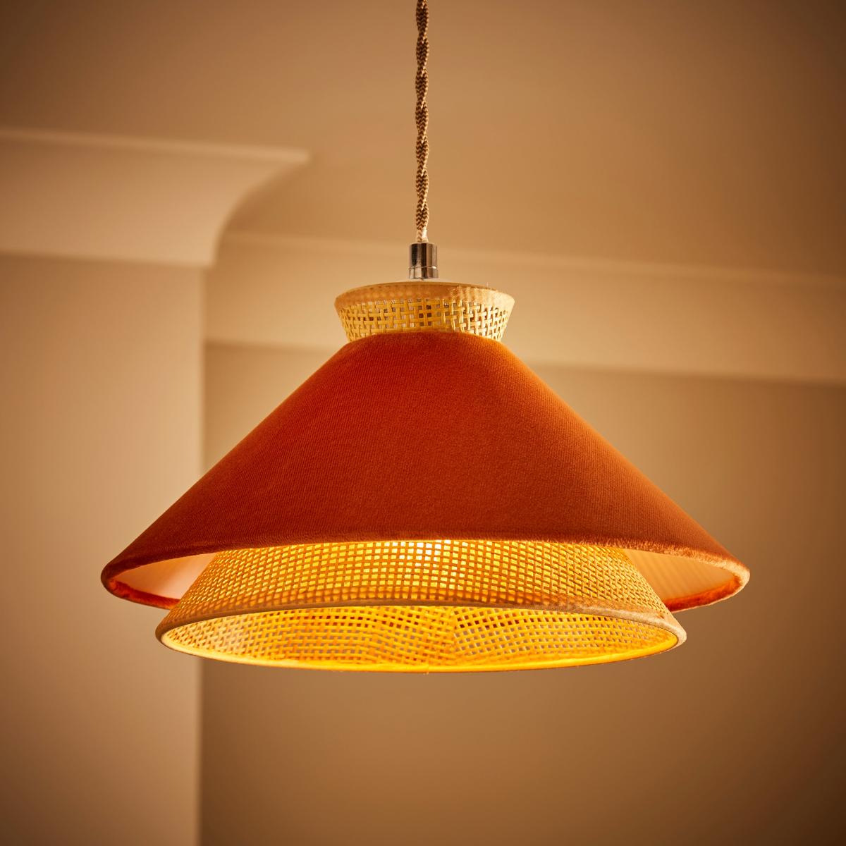 I love this pendant because of its warm, earthy tone and textured materials, making it versatile for a variety of interiors. It works particularly well in boho, coastal, or Scandinavian spaces where layered textures and natural materials are key. For practical styling, consider pairing it with neutral or warm colour palettes to highlight its burnt orange, and hang it over dining tables, kitchen islands, or even in a cosy reading nook for a welcoming glow. To keep the look balanced, combine it with rattan or woven elements and keep surrounding decor simple to let the shade genuinely stand out.