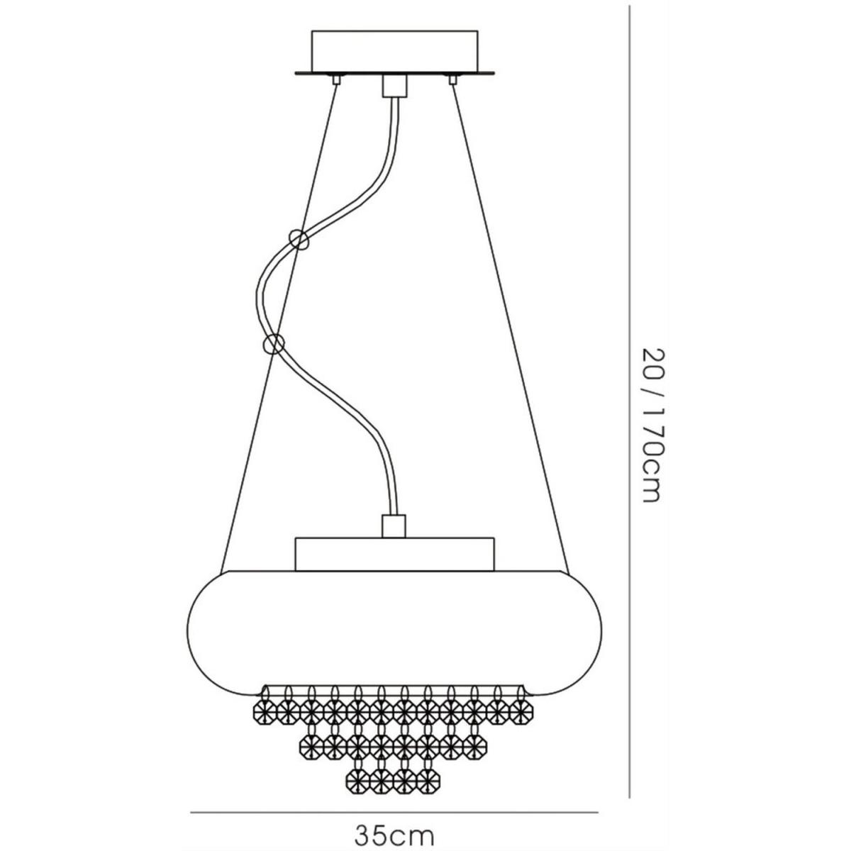 This is available as a small or large pendant, in a chrome or copper finish. The shell like shape is simple to not detract attention from the decorative crystal strands that hang at the base of the light. The light gives the impression it is floating because of the minimal but strong suspension wires, creating a magical orb of light wherever placed.