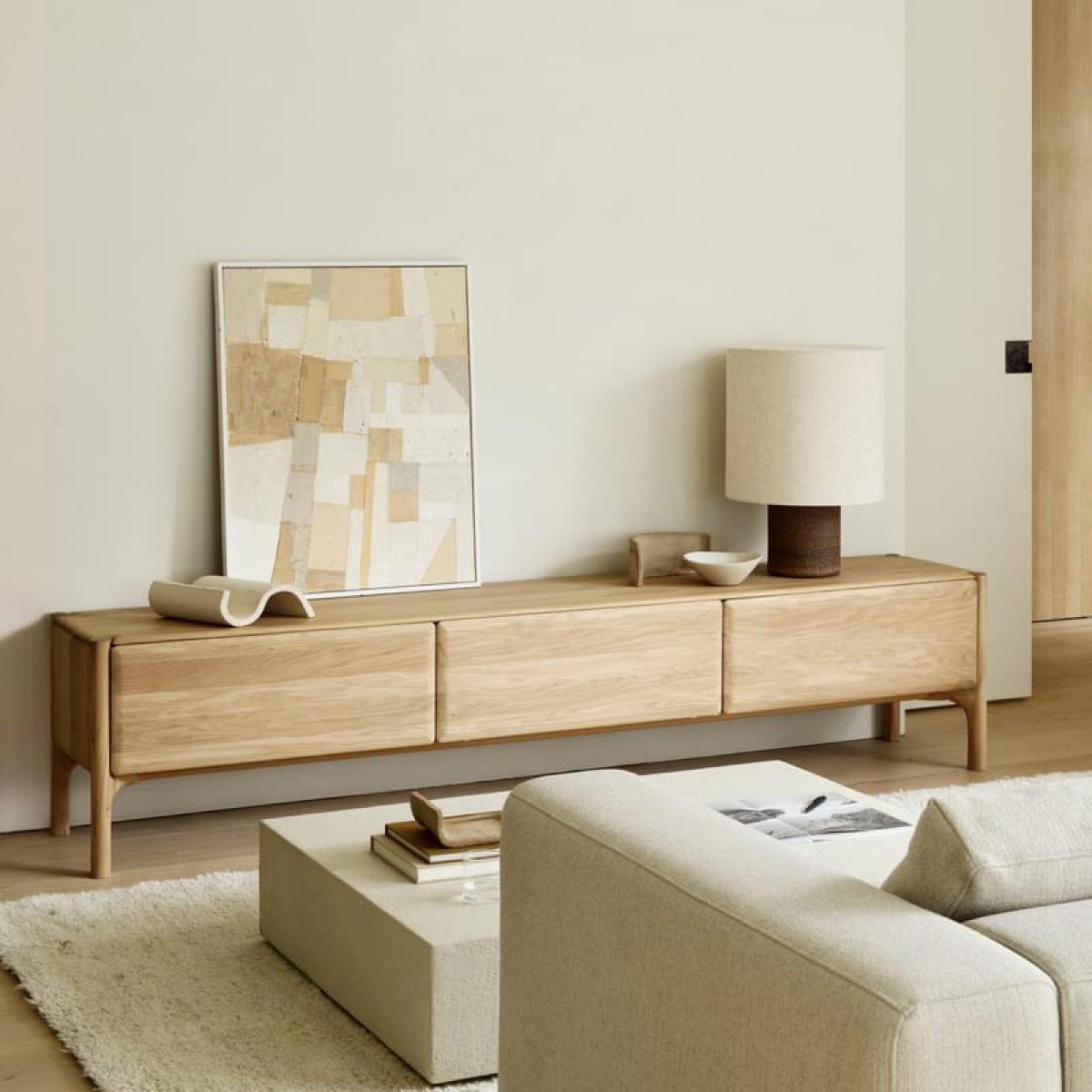 The PI TV stand is a versatile piece that works especially well in contemporary, Scandi, or minimalist interiors thanks to its clean lines and natural wood finish. I love how its understated design allows it to blend seamlessly into different spaces, offering both functional storage and aesthetic appeal. Practical styling tips include layering with some sculptural vases or books on top for visual interest, and using baskets or low storage boxes underneath for tidiness. Its generous width makes it suitable for larger TVs or as a low-sideboard, making it a practical yet stylish addition to living rooms aiming for a warm, natural look.
