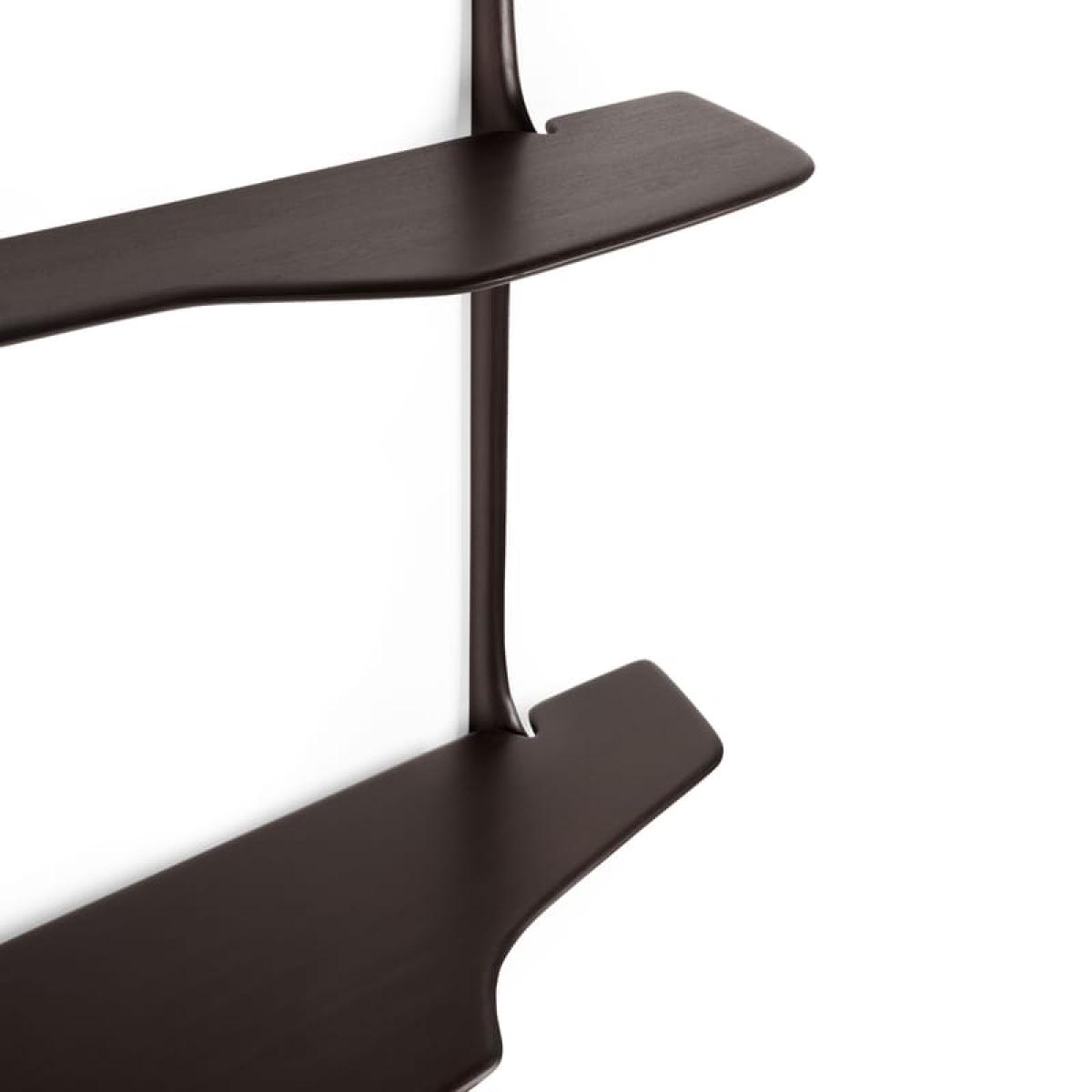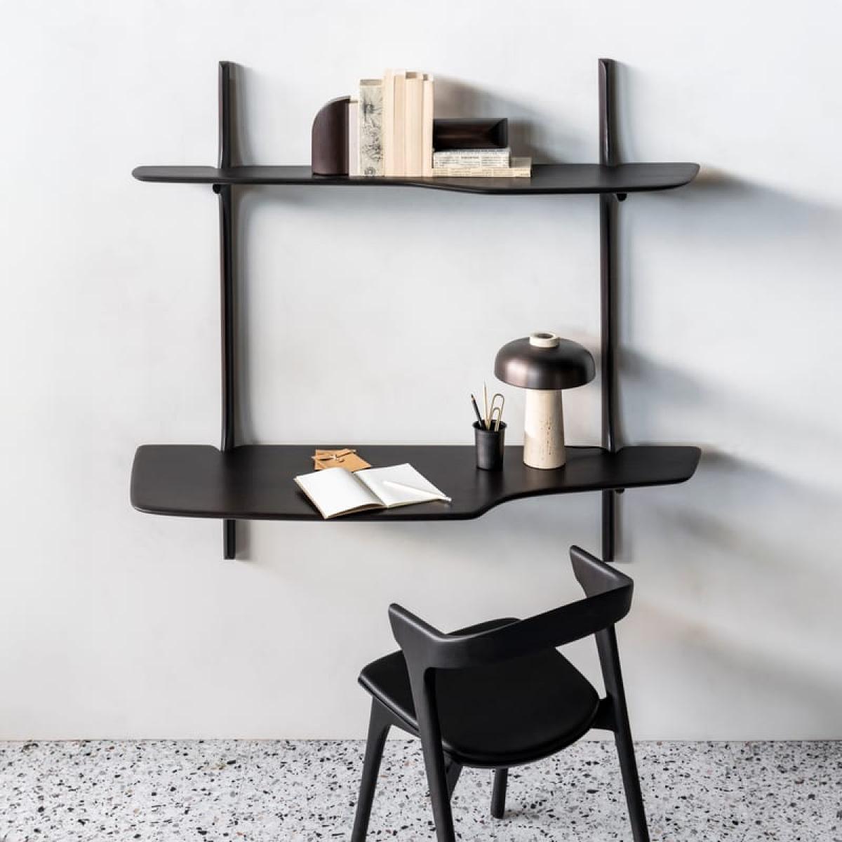 The PI collection pays homage to living design, retaining the strength, curves and lines created by nature. Curved forms, organic and intriguing, take shape in Solid mahogany with a Polished finish. This dark wood with its noble connotations lends an art deco style that warms your interior with its dark nuances. Each piece of PI furniture is hand-finished to ensure that the unique character of the wood is preserved. The PI Wall desk is a practical solution for small spaces, providing a quiet corner to work on your laptop at home. This Wall desk is perfect for telecommuting. It can be installed anywhere: living room, bedroom or hallway. Its shelving system means you can work with all your documents close at hand. For twenty-five years, the Belgian brand Ethnicraft has honored the beauty and authenticity of Solid wood. Timeless, extremely solid and durable, this is quality furniture that ages beautifully and is handed down from generation to generation. Handcrafted, Ethnicraft furniture is the fruit of exceptional know-how. Behind the apparent simplicity of the design lies a constant quest for innovation. Integrating advanced techniques into the creative process, each new design is crafted down to the smallest detail. Care and maintenance. Varnished wood products are coated with a protective layer. This finish gives the product its Natural color and provides effective protection against stains. Despite this treatment, it is advisable to clean up any liquid splashes immediately. In detail: Variation : Dark brown Mahogany Brand : Ethnicraft Designer :Alain van Havre Type : Wall console table, Wall desk Colour :Acajou brun foncé Material : Stained solid mahogany Brown with varnish finish Dimensions :W 140 x D 48 cm x H 126 cm Weight : 19.8 lb Characteristics : Wall desk with top shelf - Hand-finished - Strong and durable Show less