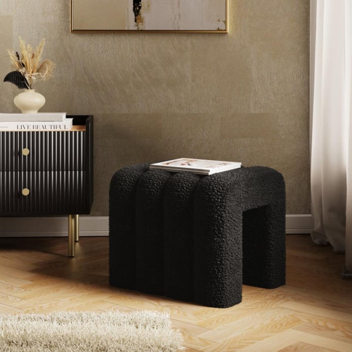 * Soft Sherpa fabric * Choice of colours * Ribbed detail * Modern design * Foam filling Add effortless style to your living space with the Pia Sherpa footstool. Finished in a soft and comfortable sherpa fabric with ribbed detailing, the modern design will really stand out as a feature in your home, whilst also acting as additional seating or a luxurious footstool. The foam filling provides cosy cushioning, and it's available in stylish black or ivory colours.