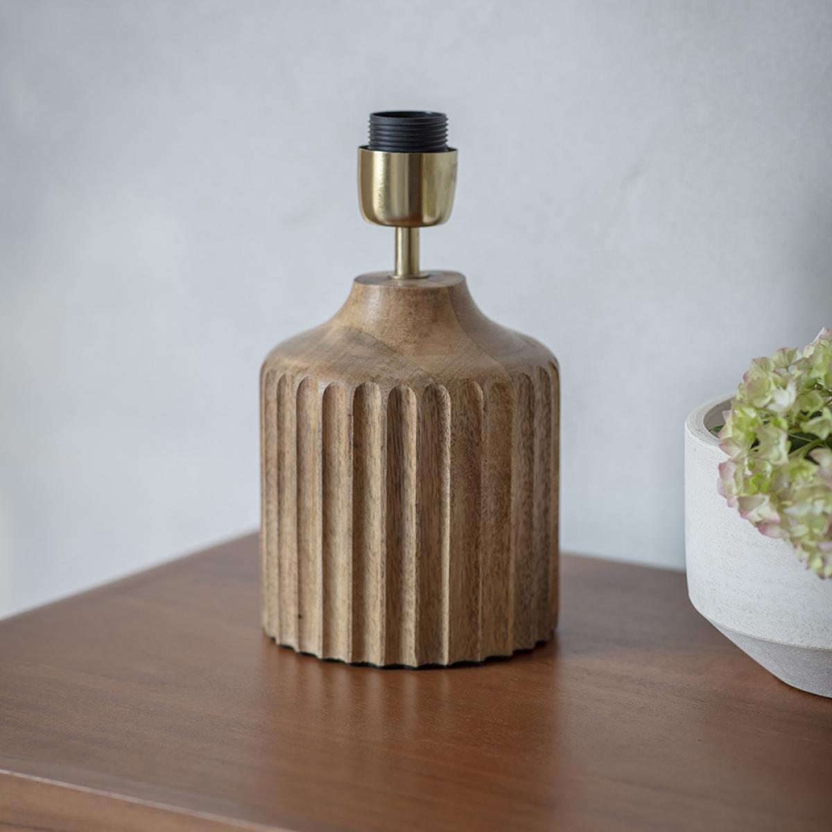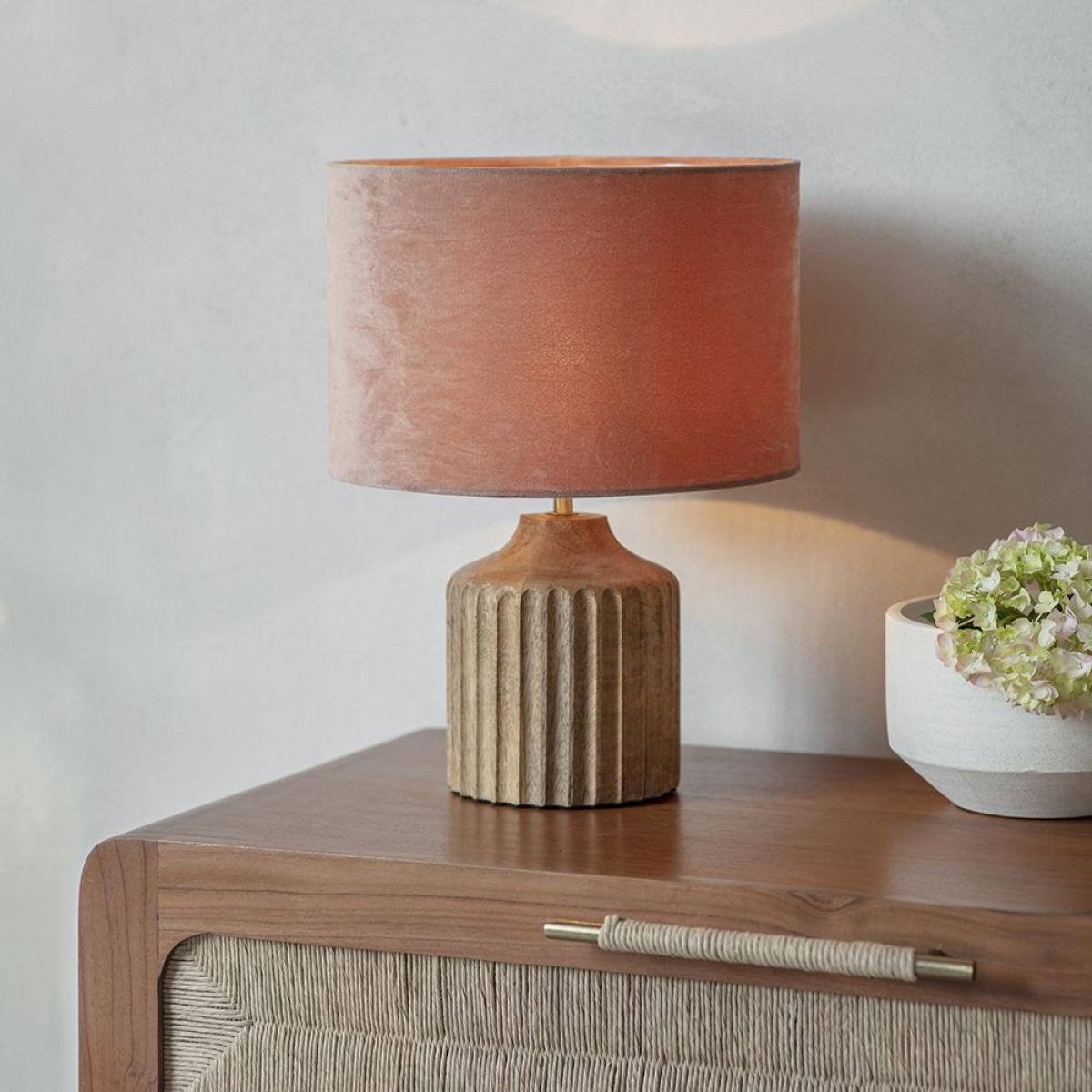 Perfect for creating a warm glow within the bedroom or living area, our Pia Table Lamp is made from sustainable mango wood and brings a simple rustic vibe to any home. Solid and sturdy, this table lamp has a vertical grooved design that brings a hand-crafted feel to surfaces, complementing both classic and contemporary decors alike. The Pia Table Lamp is a sustainable solution to table lighting with its solid mango wood design. Adding a soft, warm pool of light in the bedroom, guest room, living space, dining area, hallway or landing, its hand-crafted style is effortlessly chic. The vertical grooves add textural interest, highlighting the natural character of the mango wood. Ideal for cosy corners, this small yet chunky table lamp complements all interiors while providing ambient and task lighting for reading, relaxing and entertaining. Finish with a neutral or bold coloured shade to complement or contrast with your décor. Matching Ilsa Table Lamp also available. Lampshade is for illustration purposes only and is not included.