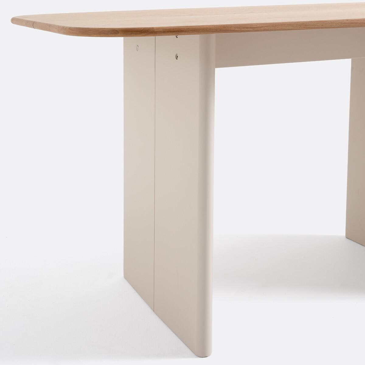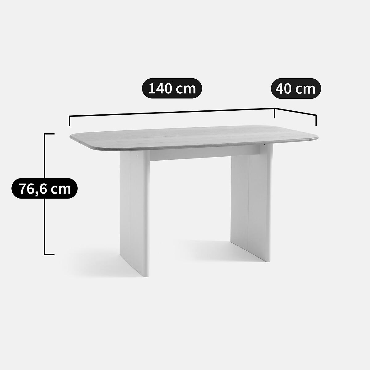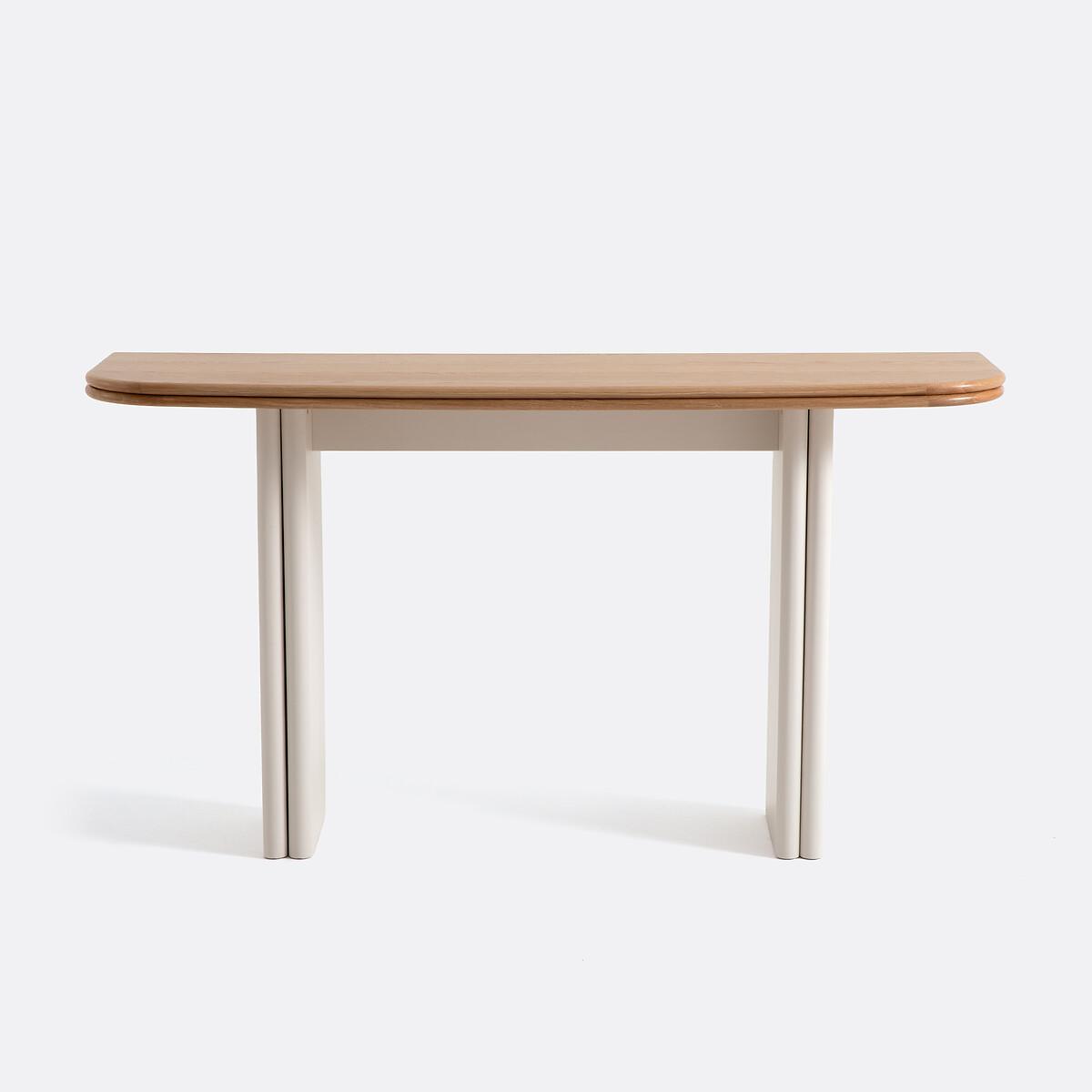 The Piana console table is part of our Les Ingénieux collection. Creations full of ideas to make life simpler and everyday life more beautiful, dreamt up by our designers in Roubaix. Console table, dining table or even a desk... Piana adapts to any use, simply by unfolding its double top and double legs. Why you'll love this product • Narrow size: At 40cm wide, it is ideal as a console table in a hallway or as an occasional work surface in the kitchen • Breakfast for 2, dinner for 4 : its top doubles in size in a jiffy to accommodate everyone • Contemporary aesthetics : With its play of materials and curves, it blends elegantly into any interior. Product Details • Table top in oak veneered MDF, polyurethane finish • Double legs in lacquered MDF with nitrocellulose varnish finish • Felt pads on feet • For 2 to 4 places • People required for assembly: 2. Care advice • To protect your table, consider trivets, coasters and placemats. Dimensions. Closed • Length: 140cm • Height: 76.6cm • Width: 40cm • Weight: 40kg. Open • Length: 140cm • Height: 74.8cm • Width: 80cm • Requires some assembly (based to be attached). • WOOD FROM SUSTAINABLY MANAGED FORESTS. FSC® certified wood comes from forests that are environmentally, socially and economically well managed. Dimensions and weight of parcel1 parcel • W156 x H16 x D50cm. 42kg