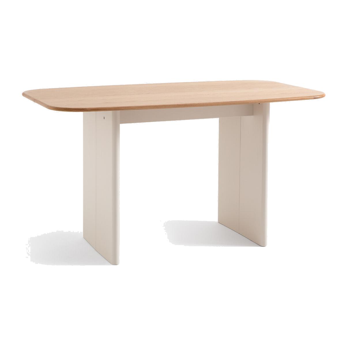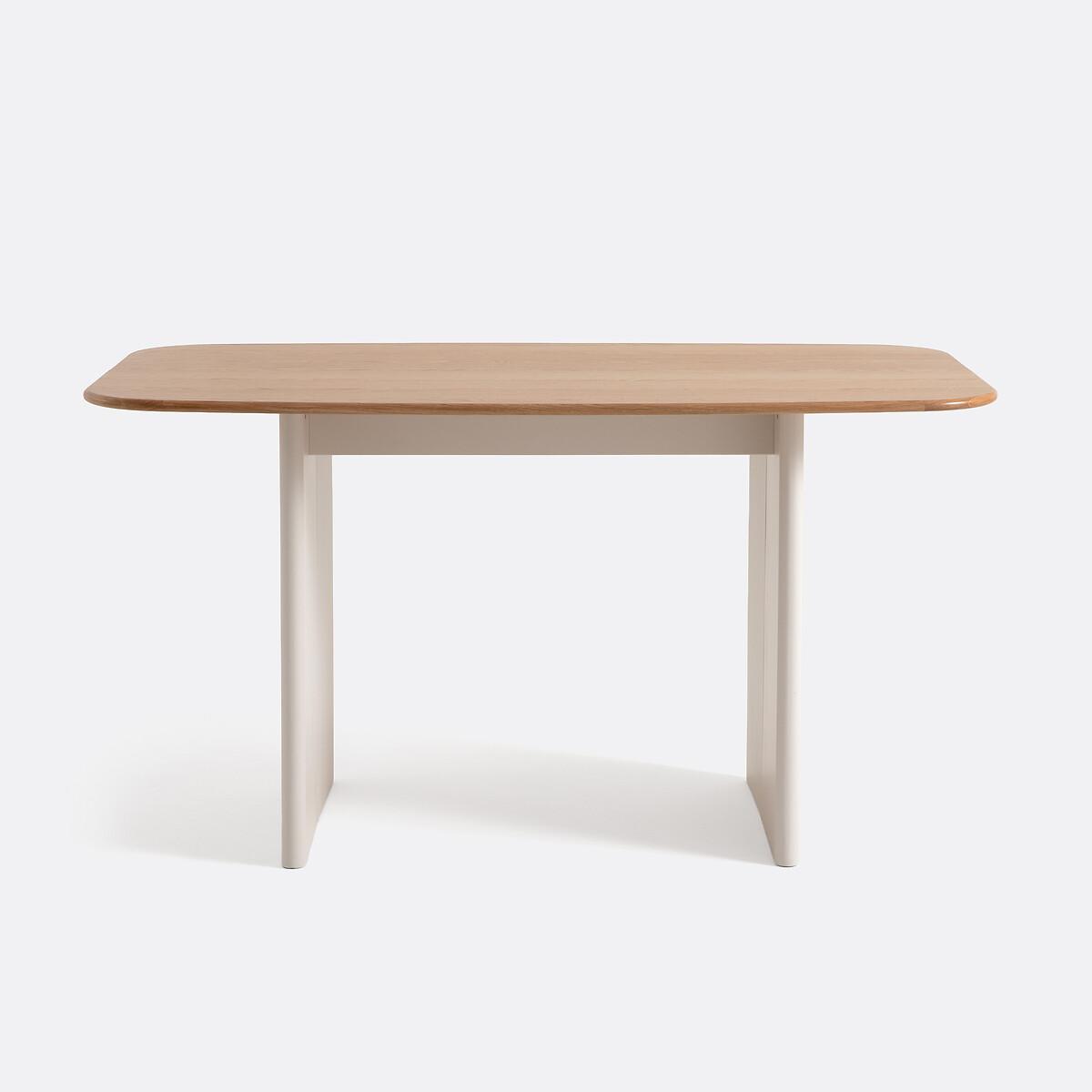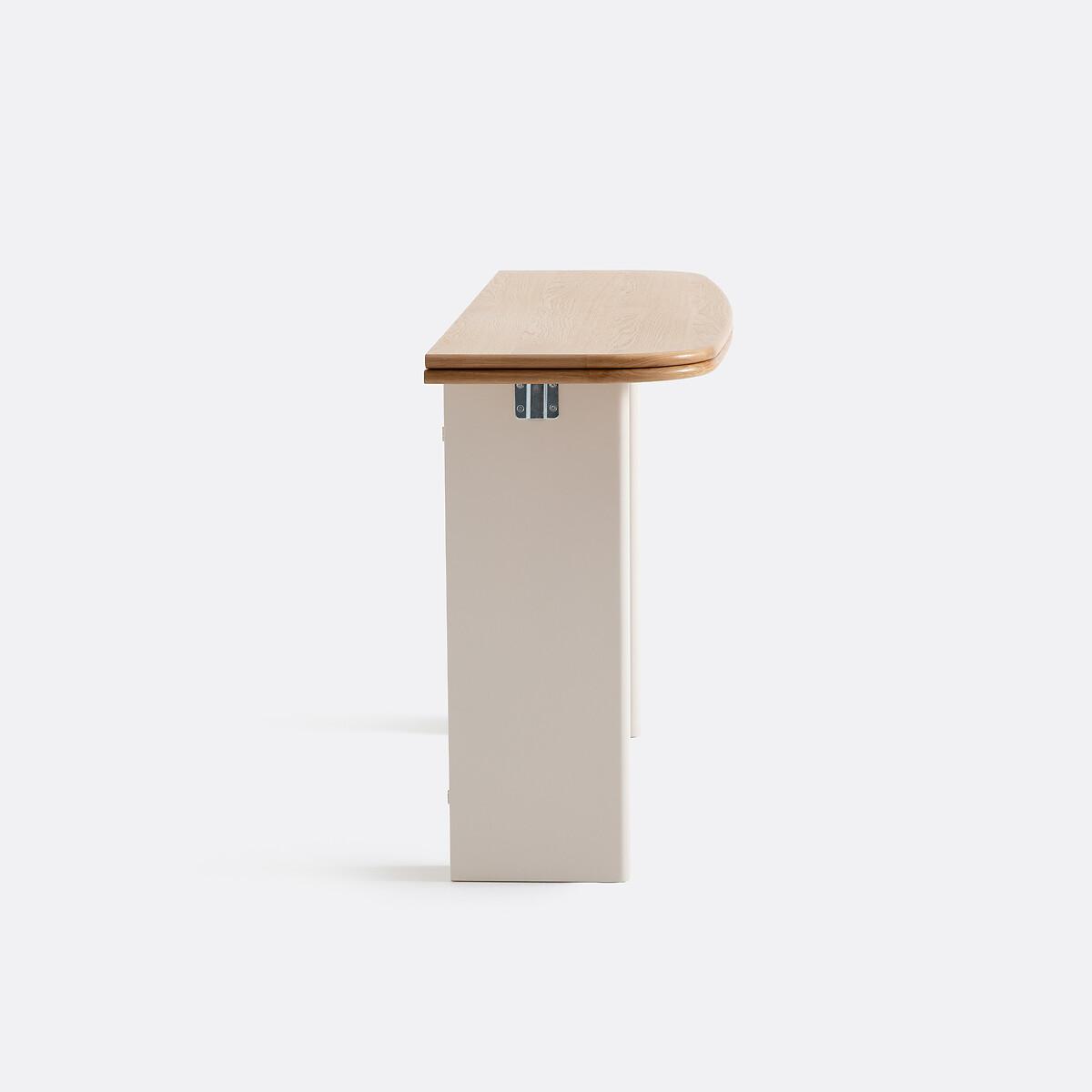 The Piana console table is part of our Les Ingénieux collection. Creations full of ideas to make life simpler and everyday life more beautiful, dreamt up by our designers in Roubaix. Console table, dining table or even a desk... Piana adapts to any use, simply by unfolding its double top and double legs. Why you'll love this product • Narrow size: At 40cm wide, it is ideal as a console table in a hallway or as an occasional work surface in the kitchen • Breakfast for 2, dinner for 4 : its top doubles in size in a jiffy to accommodate everyone • Contemporary aesthetics : With its play of materials and curves, it blends elegantly into any interior. Product Details • Table top in oak veneered MDF, polyurethane finish • Double legs in lacquered MDF with nitrocellulose varnish finish • Felt pads on feet • For 2 to 4 places • People required for assembly: 2. Care advice • To protect your table, consider trivets, coasters and placemats. Dimensions. Closed • Length: 140cm • Height: 76.6cm • Width: 40cm • Weight: 40kg. Open • Length: 140cm • Height: 74.8cm • Width: 80cm • Requires some assembly (based to be attached). • WOOD FROM SUSTAINABLY MANAGED FORESTS. FSC® certified wood comes from forests that are environmentally, socially and economically well managed. Dimensions and weight of parcel1 parcel • W156 x H16 x D50cm. 42kg