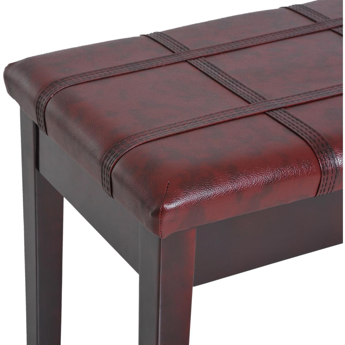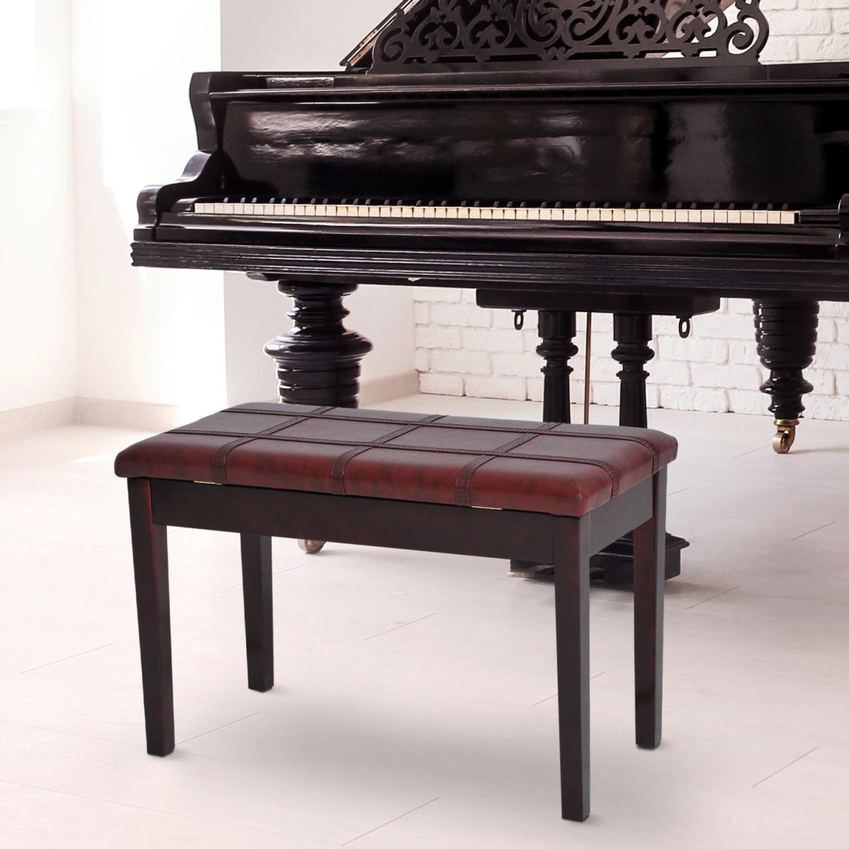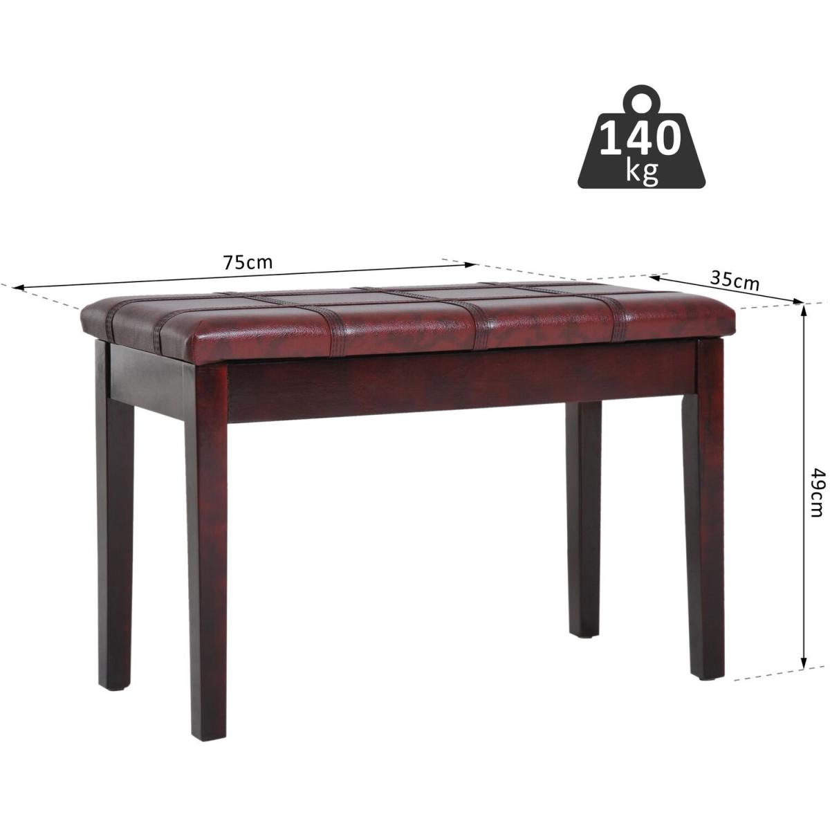 This Storage Piano Bench is made of a solid wood frame and covered with PU leather. It looks elegant in the room as furniture. Featuring ample under-seat storage for sheet music or accessories, this luxury musical furniture can be used with most pianos and electronic keyboards. Measures 75. L x 35W x 49. H (cm), this seat boasts room for one to two pianists to play a lovely solo or duet comfortably and is especially useful for children's piano lessons.