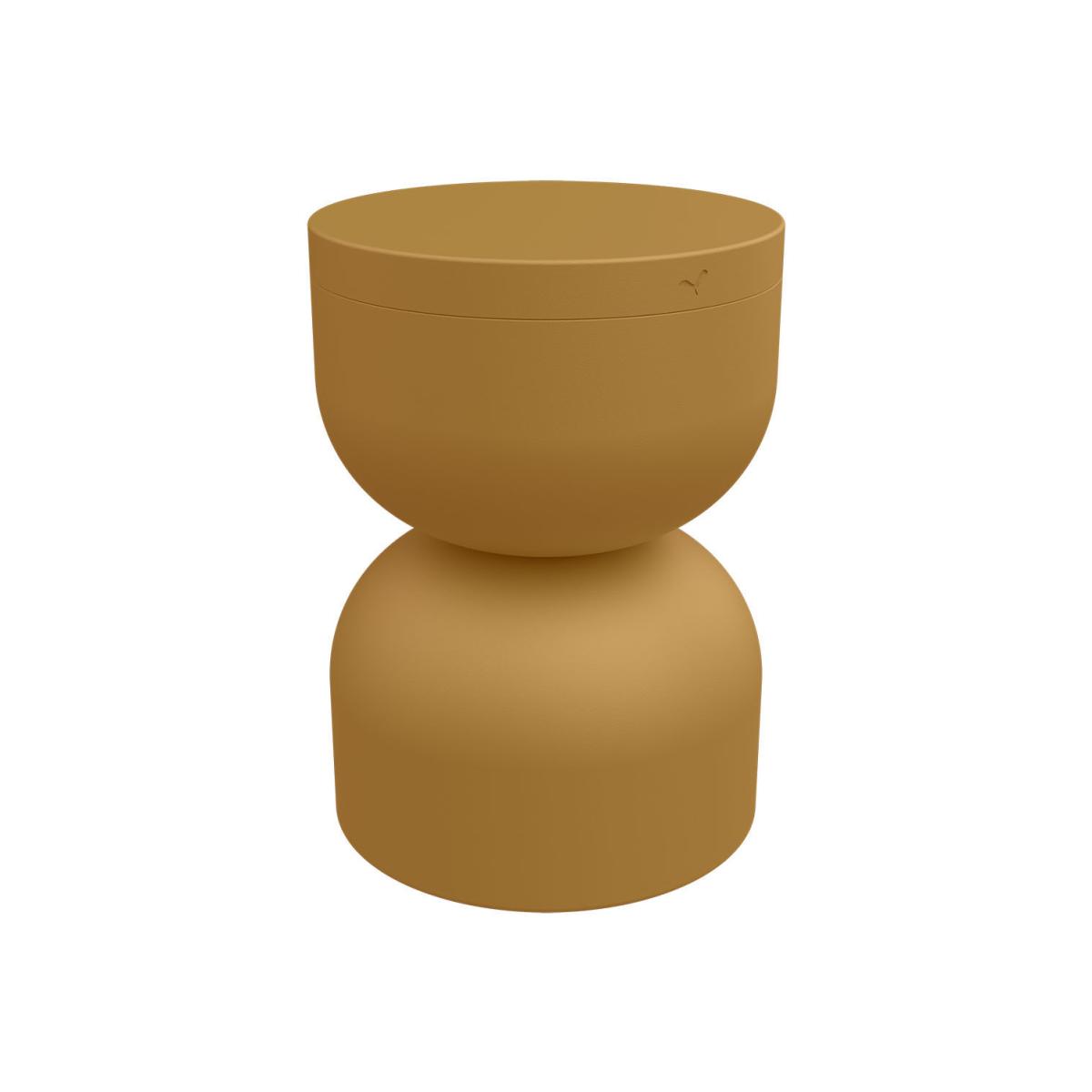 A clever piece of furniture with multiple functions... With its soft, rounded shapes, this coloured metal stool is the future iconic piece for your terrace. Piapolo is much more than just a stool! Used in turn as a seat around a dining table, side table, next to a sofa, bedside table: this jovial, adaptable piece of furniture finds its place throughout the house with disconcerting ease. Its lid lifts easily to turn it into a storage box: a novel use to add to an already long list. Straight out of the imagination of designer Tristan Lohner, this product required 4 years of research and development to meet the brand's requirements. The result? A fun, hard-wearing decorative object whose timeless lines mean it will stay right on trend. The true essence of industrial expertise, the Piapolo stool incorporates the codes that have made Fermob so successful. In terms of materials, the brand has opted for an aluminium construction for its qualities of lightness and malleability. Drawing on its expertise in metalworking, Fermob has given back its former glory to an ancestral technique by deformation: metal turning. As for colours, the Piapolo stool is available in 10 colours from the Fermob colour chart thanks to the 100% polyester powder paints which guarantee great outdoor durability.