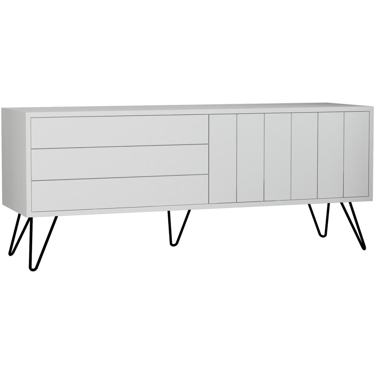 Hey there! If you're looking for a TV stand that's both stylish and practical, look no further! This stand is perfect for any living space and comes in multiple color options to match your home decor. The hairpin metal legs give it a contemporary touch that's sure to impress. Plus, it's super easy to assemble with all the necessary hardware included. Whether you're watching a movie, show or playing games, this stand will make sure you do it in style. So, go ahead and add this sleek and functional piece to your living room, bedroom, or office!