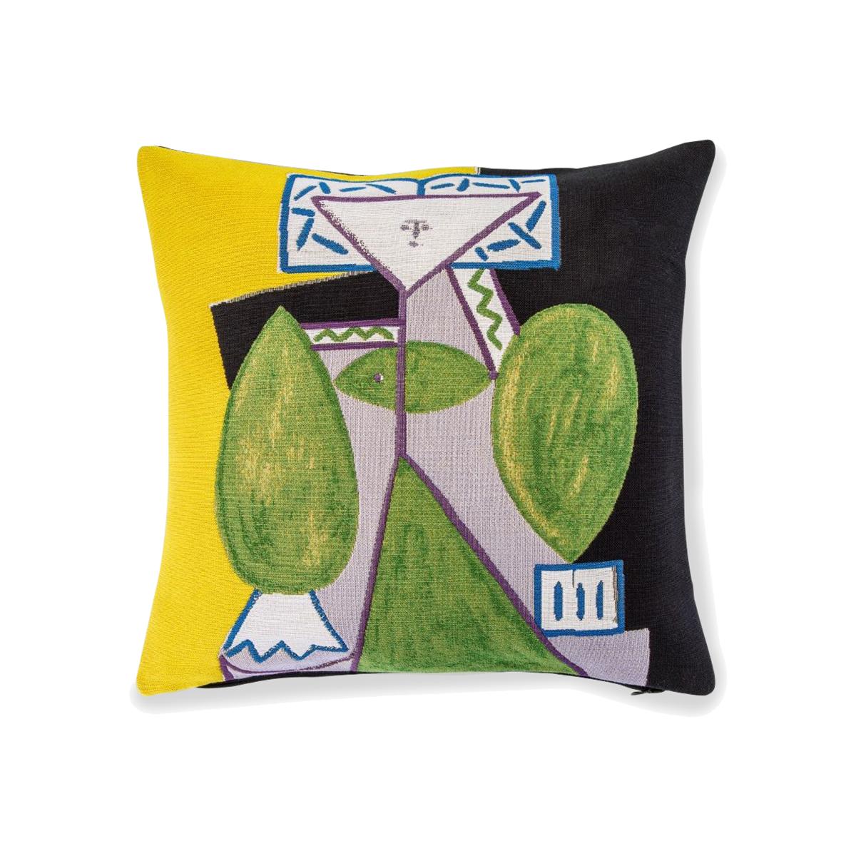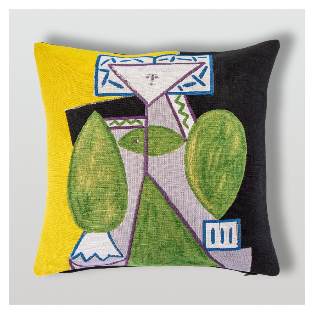 Who says a painting should be reserved for walls? Exclusive to The Conran Shop in the UK, this cushion cover features the 1947 work, ‘. Femme en Vert et Mauve. ’, by the incomparable Pablo Picasso and is sure to transform your interior into a live-in art gallery. Crafted using an age-old method of weaving on Jacquard looms, this magnificently handcrafted tapestry cushion cover is made in Flanders and created in collaboration with the Picasso Foundation. An elegant marriage of traditional artisan practice and iconic artwork, this Picasso Cushion Cover is sure to inject energy and style to any home. Care instructions: Dry clean only.