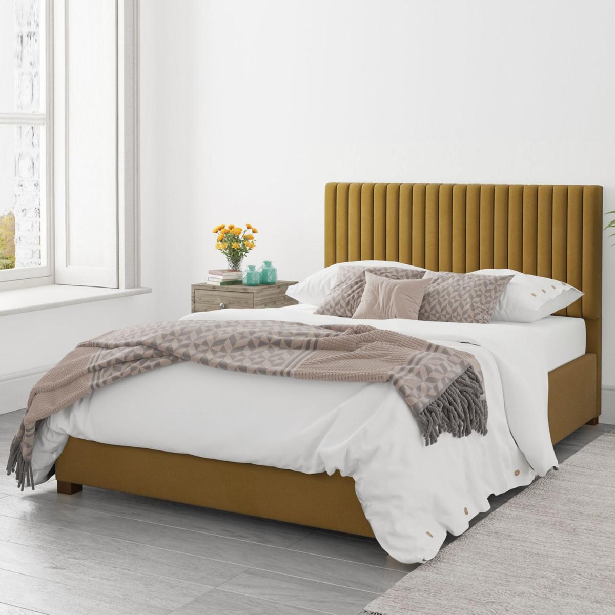 Piccadilly Double Ottoman Bed in Deep Mustard Velvet