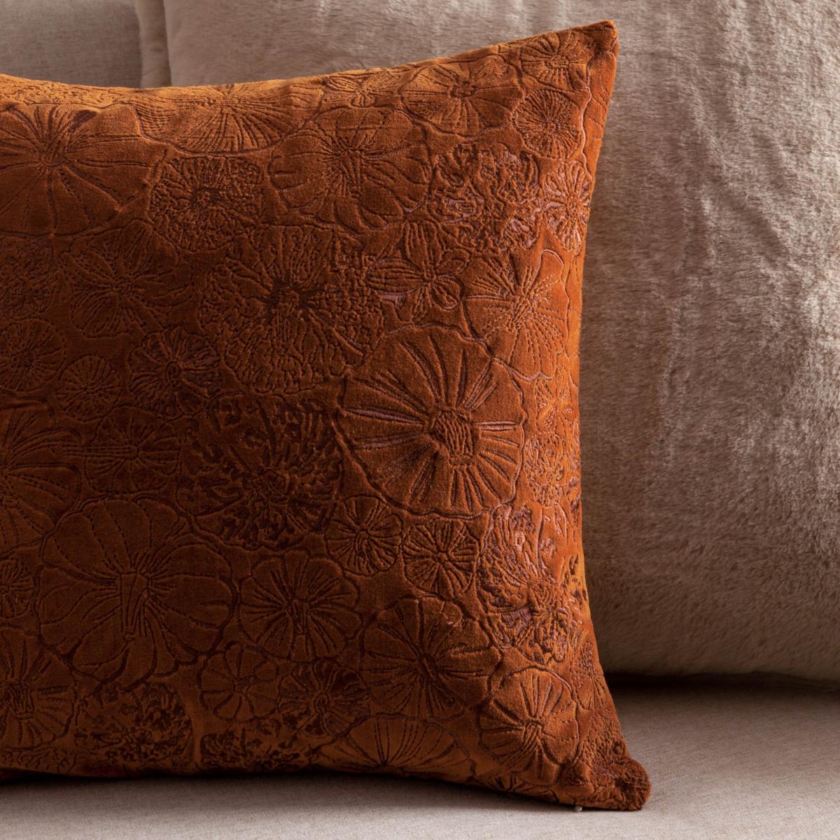 * Charming, autumnal design* Feather or polyester insert available* Square shape* Dry clean only Celebrate autumn with the Picking Patch Cushion, featuring an all-over embroidered pumpkin design in warm, earthy tones. This cushion is crafted from luxurious velvet for a soft, elegant finish and is available with either a feather or polyester insert. The cushion's plain reverse adds versatility, making it a chic addition to any seasonal décor. Perfect for bringing a touch of harvest charm to your living space.