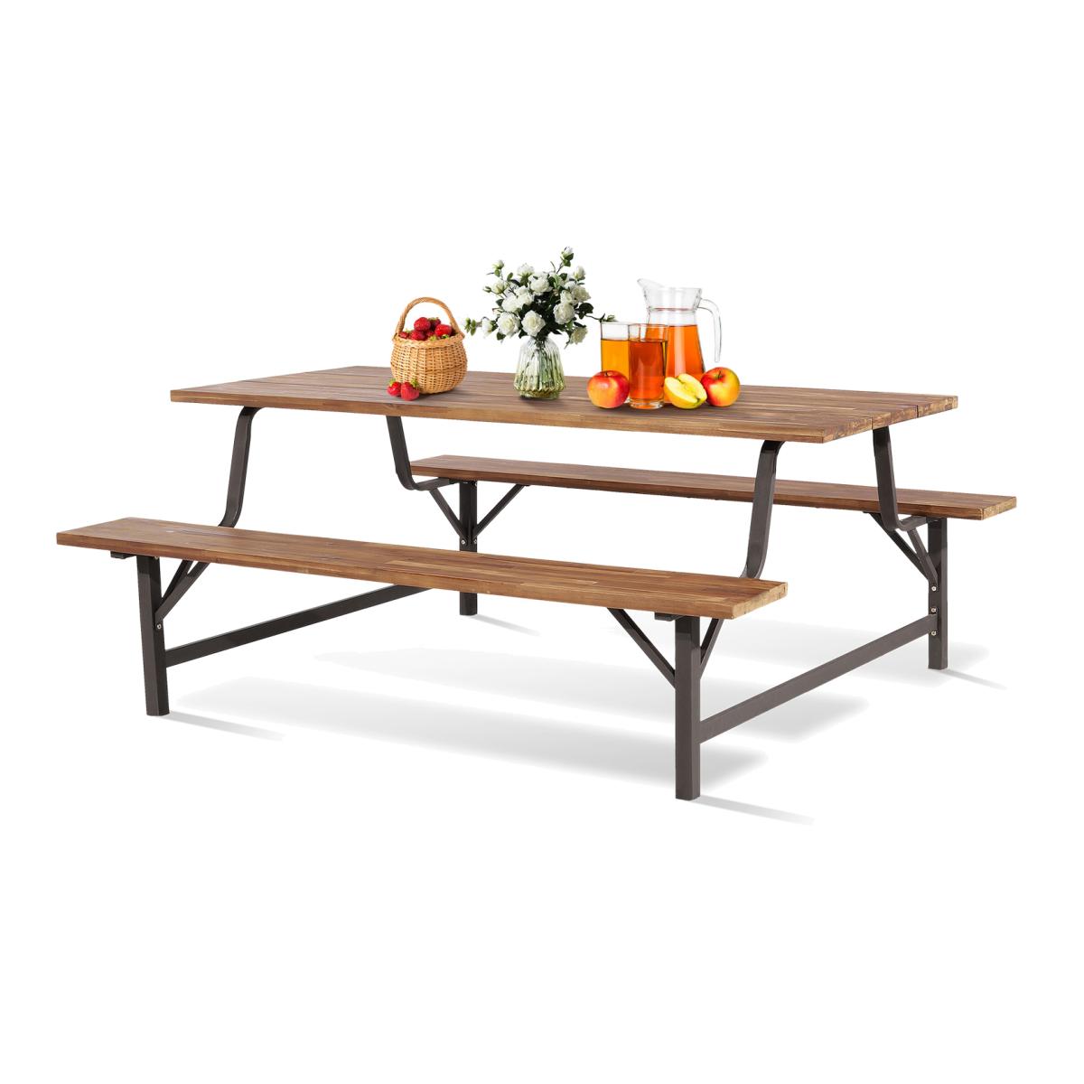 Both the table and benches are 180 cm in length and the tabletop is designed with a 4.5cm umbrella hole, allowing you to insert a patio umbrella, and thus you can relax in the sunshade. Made of selected acacia wood, the tabletop and the 2 seats are not only solid and durable but also natural and elegant. Plus, the heavy-duty metal frame with powder-coated surface is resistant to rust and deformation, ensuring long-lasting service life. Picnic Dining Table Bench Set - Brown