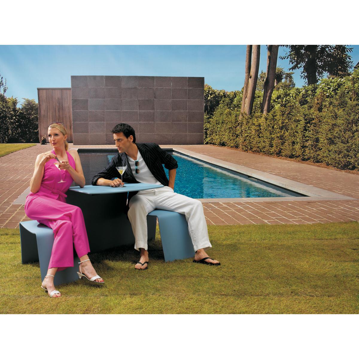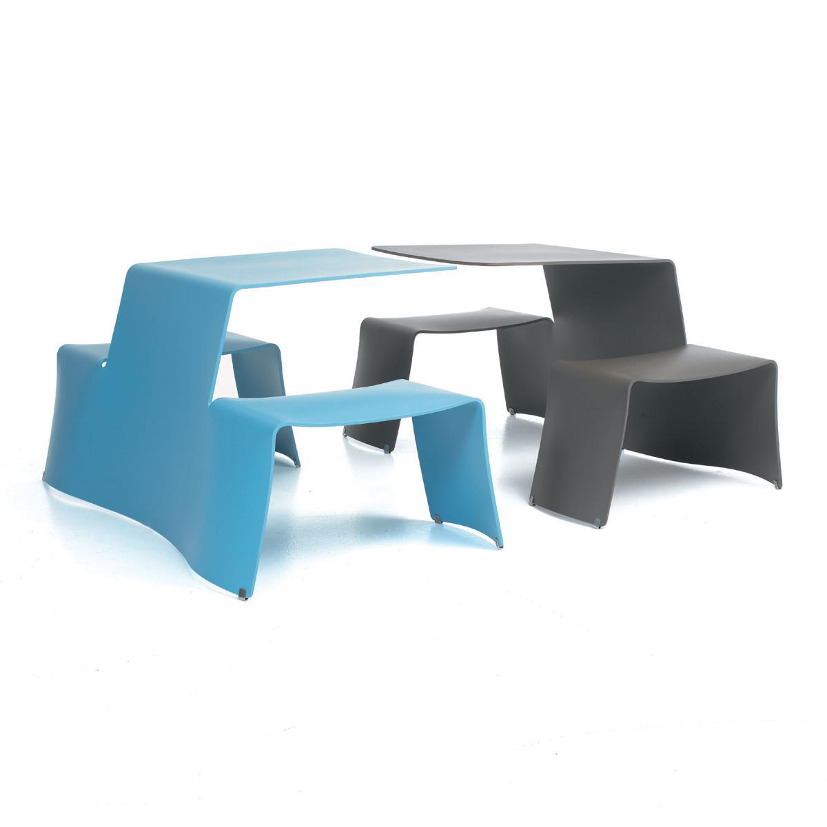 Picnik - a table for two, please ! By 2002 it was clear that Gargantua was here to stay. The Extempore range, a trendsetter in combining wood and aluminium created four years later, was also well on its way to becoming a real design classic. By this time a consistently growing number of Extremis products found their way to foreign markets and became especially popular in large cities. This metropolitan atmosphere inspired Dirk Wynants to write the next chapter in the Extremis saga. He noticed that major cities had a lot of large buildings with limited outdoor space. And he also realized that more and more families all over the world consisted of two people. Picnik, for which Dirk Wynants appealed to the expertise of Xavier Lust, was the perfect answer to these urban demands.