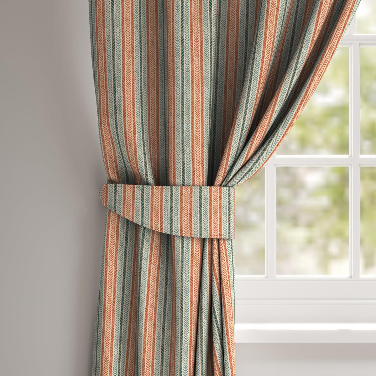 Crafted with a modern striped design, this tie back will add a welcoming touch and pop of colour to your home. Not only do these tie backs serve as a decorative element, but they also offer practicality at its finest. With a seamless blend of functionality and style, our tie backs effortlessly hold your curtains in place while providing a neat and organized appearance. Say goodbye to tangled and dishevelled drapes as our tie backs discreetly tuck away your curtain of choice, allowing natural light to filter through and illuminate your living spaces. Pair this stylish tieback with our matching Made To Measure Curtain to give your home a beautifully co-ordinated finish.