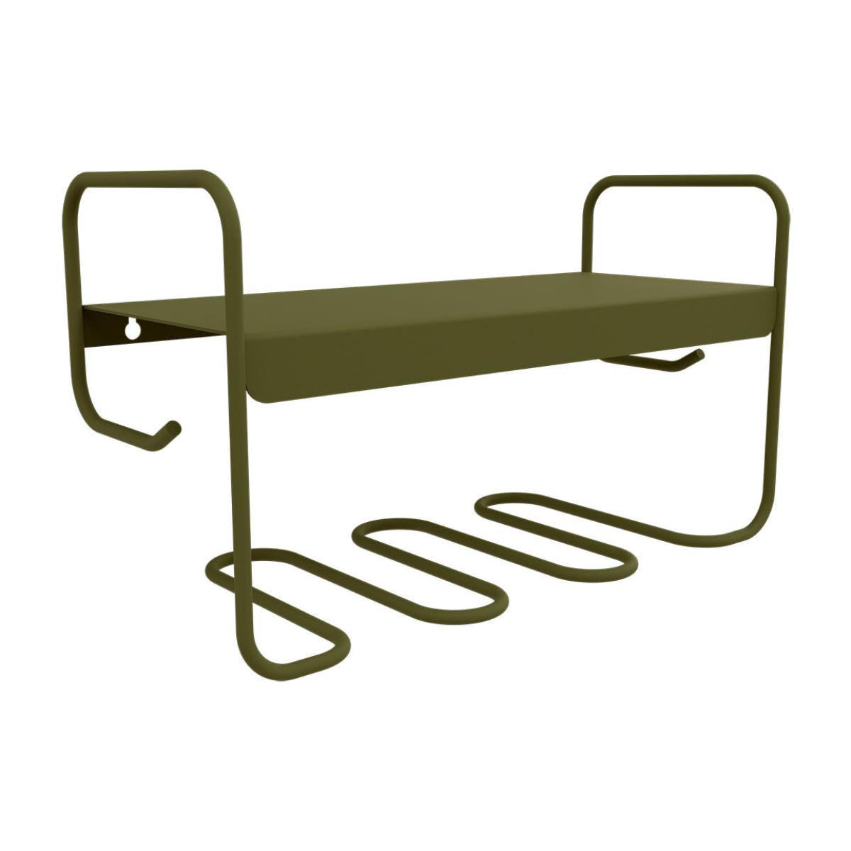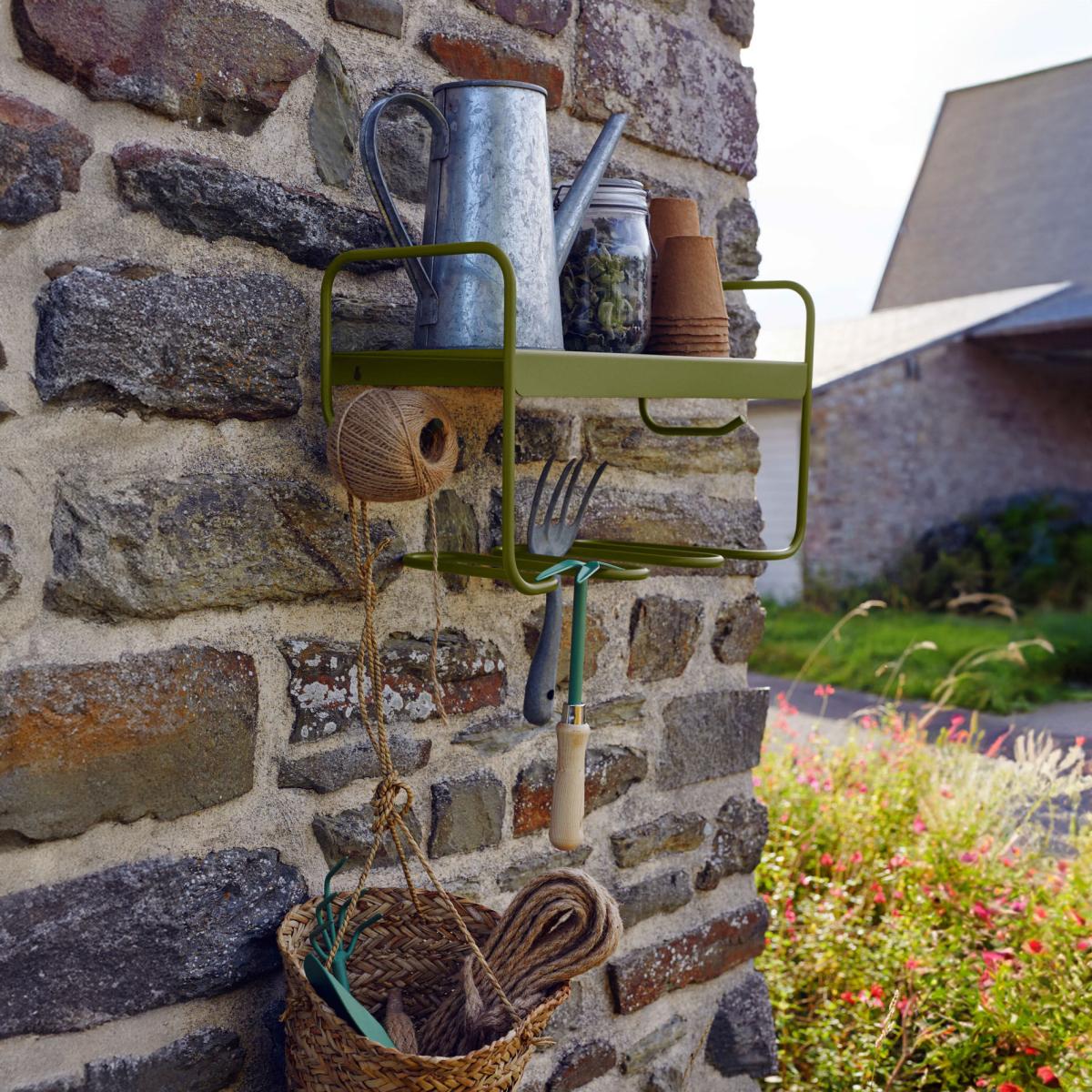 Resolutely clever and functional, the Picolino wall shelf is the ideal accessory on which our interior and exterior spaces can rely! Second to join the Picolino family alongside the planter, this shelf shares the same DNA: a sleek, elegant shape, robust sheet steel construction and incredible versatility. Attached to the walls of our kitchens, bedrooms, bathrooms or poolhouses, this storage shelf is immediately charming with its multiple uses! Its rectangular top can act as a support holding small plants, candles or books. Its “S”-shaped wire structure lets you hang various objects such as utensils, DIY tools, etc. At the back of this decorative shelf, the steel wires curve to form a hook on each side. This clever detail is perfect for hanging handbags, light items of clothing and accessories etc. Despite its very slender silhouette, this wall shelf is surprisingly robust. Finally, its compact size takes up next to no room, so you will easily find a place for it, anywhere and everywhere. Whatever its colour and location, indoors or out, this storage shelf isn’t short of advantages! A unique decorative element or practical storage solution, the Picolino wall shelf decorates our spaces as much as organises them!