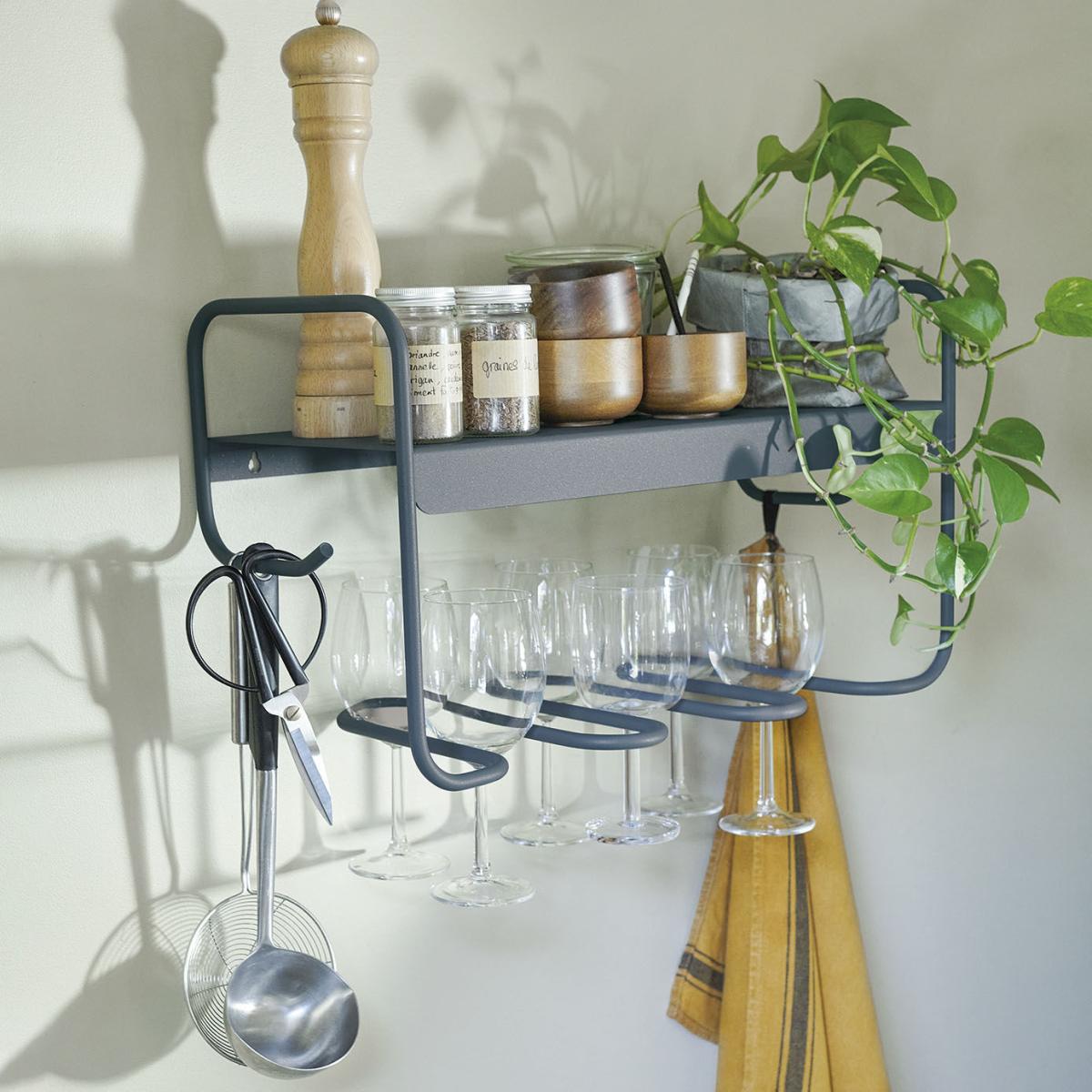 Resolutely clever and functional, the Picolino wall shelf is the ideal accessory on which our interior and exterior spaces can rely! Second to join the Picolino family alongside the planter, this shelf shares the same DNA: a clean, elegant silhouette, a composition in durable sheet steel and disconcerting versatility. Attached to the walls of our kitchens, bedrooms, bathrooms or poolhouses, this storage shelf is immediately charming with its multiple uses! Its rectangular top can act as a support holding small plants, candles or books. Its “S”-shaped wire structure lets you hang various objects such as utensils, DIY tools, etc. At the back of this decorative shelf, the steel wires curve to form a hook on each side. This clever detail is perfect for hanging handbags, light clothing, accessories, etc. Although the silhouette of this wall shelf is extremely thin, this doesn’t compromise its robustness - quite the contrary. Finally, its small, space-saving format guarantees it can easily find a place in every corner of your life. Whatever its colour and location, indoors or out, this storage shelf isn’t short of advantages! A unique decorative element or practical storage solution, the Picolino wall shelf decorates our spaces as much as organises them!