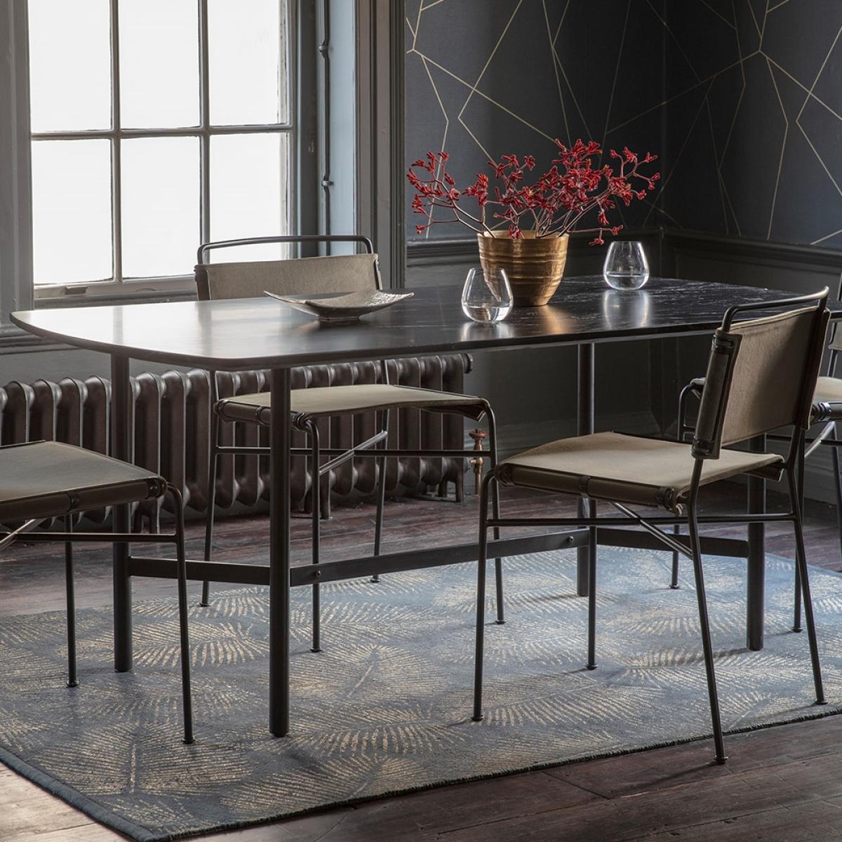 I love this dining table for its sleek, modern design that pairs well with both contemporary and minimalist interiors. Its clean lines and dark finish make it a versatile piece, adding sophistication to a variety of colour schemes and styles. It works particularly well in open-plan kitchens or dining rooms where it can be complemented with a mix of textured chairs and layered accessories. Practical styling tips include keeping the table uncluttered with a simple centrepiece, such as a bowl or a small bouquet, to enhance its understated elegance. Because of its neutral tone, it’s easy to add seasonal or colourful accents through textiles and décor, making it adaptable for different occasions.