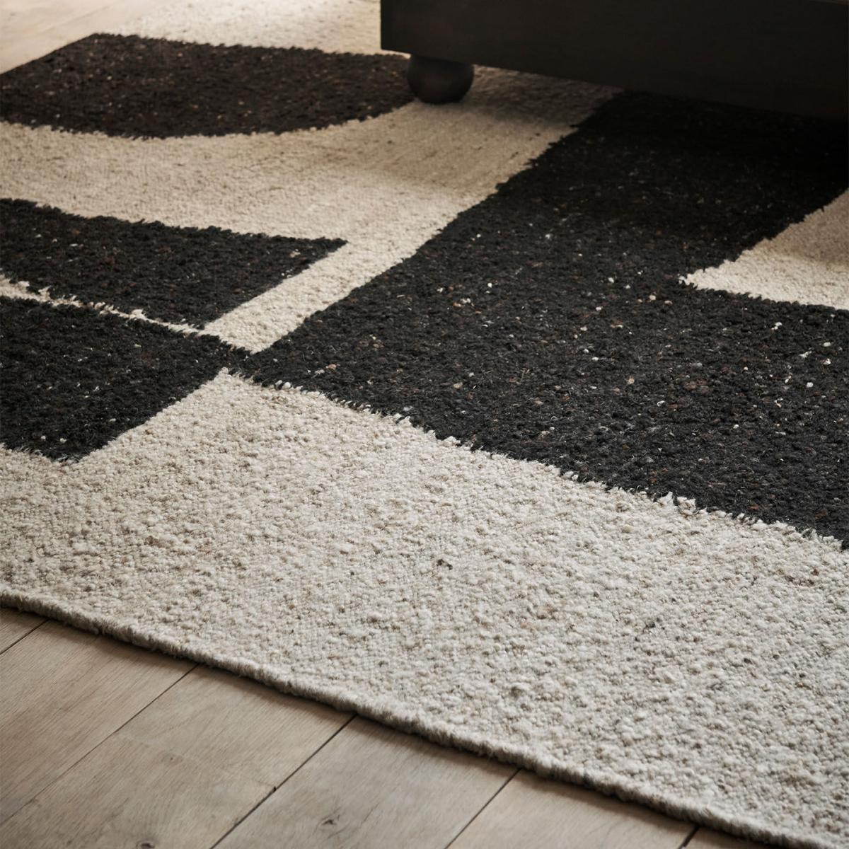 This piece rug is a versatile option that works well in both contemporary and minimalist interiors thanks to its clean white base and striking black abstract pattern. I love how its hand-woven texture adds warmth and subtle texture to a space without overwhelming it. It’s ideal for living rooms or bedrooms as a grounding element, creating a cosy yet modern feel. For styling tips, consider pairing it with neutral furniture to let the bold design stand out, or layer it over a larger, neutral carpet to add depth. Its 140 x 200 cm size makes it perfect for defining a seating area or anchoring a bed arrangement, and the neutral palette ensures it can be easily integrated into a variety of colour schemes.