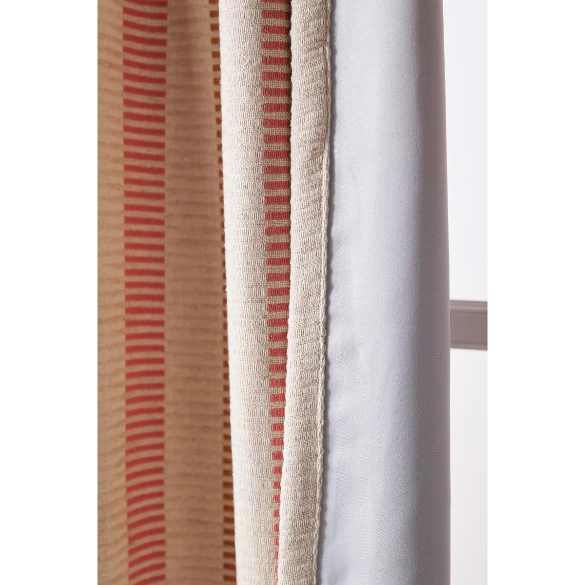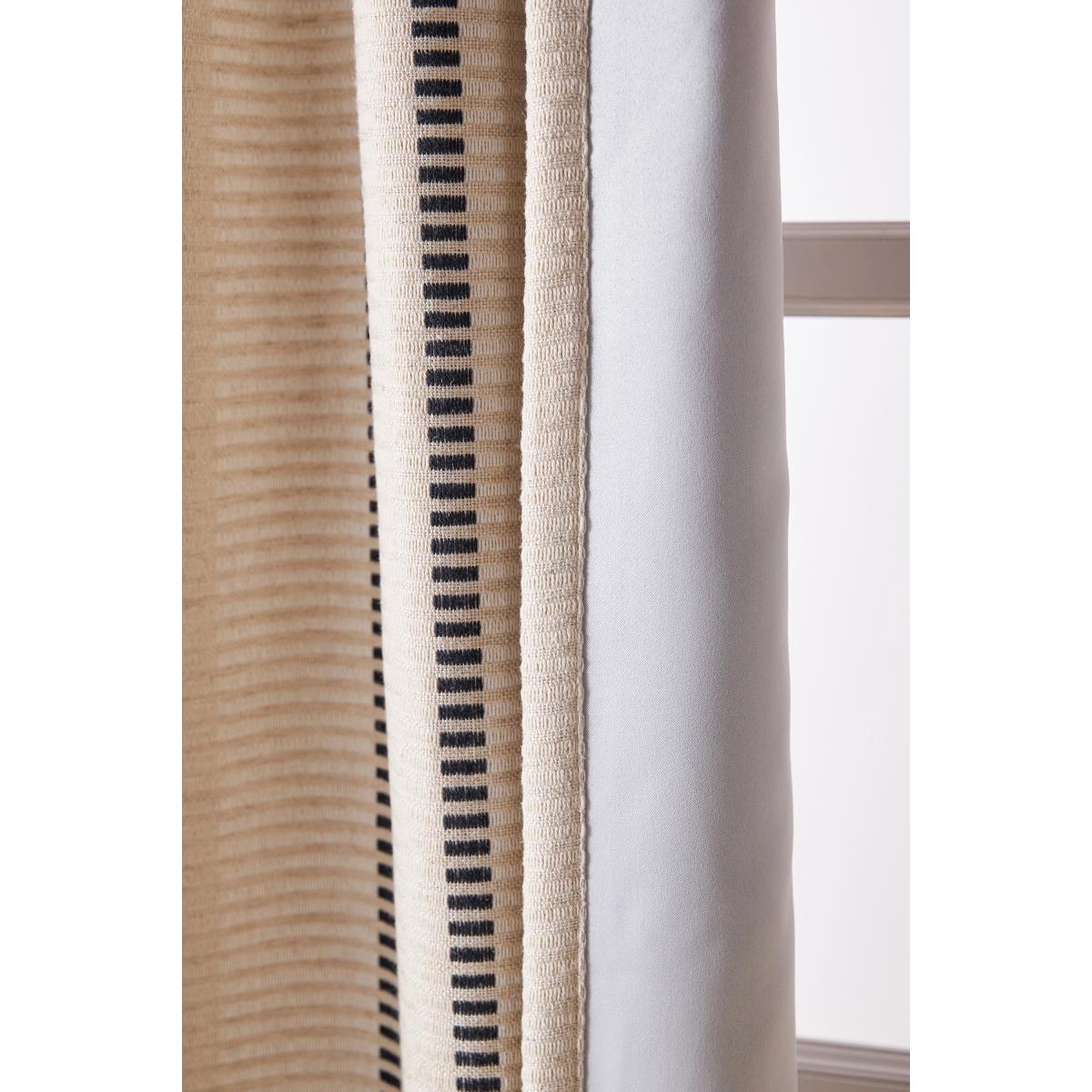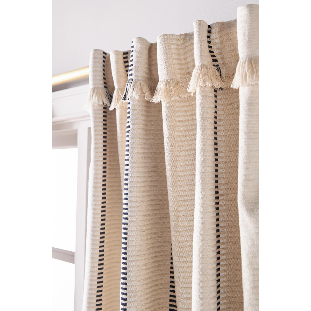 Featuring striped fabric fragments pieced together with zig-zag stitching, this curtain invites a pop of pattern to any window. * Sold individually * Tunnel tab construction * 56% cotton, 36% rayon, 8% linen * Appliqué embellishment * This style is light filtering * Unlined * Machine wash; line dry and iron to retain length * Spot clean recommended * Imported