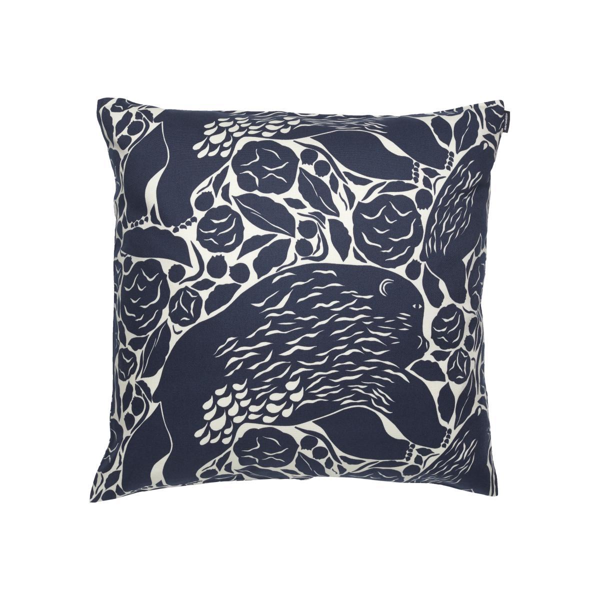 PLEASE NOTE: cushion cover sold on its own (filling sold separately). The Karhuemo ("mother bear") pattern was designed by Aino-Maija Metsola, Finnish nature-loving illustrator and designer. Passionate about colour, she designs prints with simple, poetic patterns. The Karhuemo pattern is a new take on a plant print that Aino-Maija Metsola created for Marimekko's 70th birthday. Among the flowers and leaves of the original sketch, Aino-Maija added a bear with her cub. The ground rumbles under the galloping mother bear, as the baby rises onto its hind legs to observe the land. Chic and graphic, the collection of textiles designed by Marimekko brings new life to your interior! Created in 1951, Marimekko is a state of mind, a way of life based on creativity, freedom of spirit and inventiveness. Its notoriety dates back to 1960, the year in which Jackie Kennedy made several public appearances in dresses designed by Marimekko. The brand went on to enjoy enormous success, which continues today with a range of clothing and decorative accessories in vibrant colours, for a house full of inspiration!.
