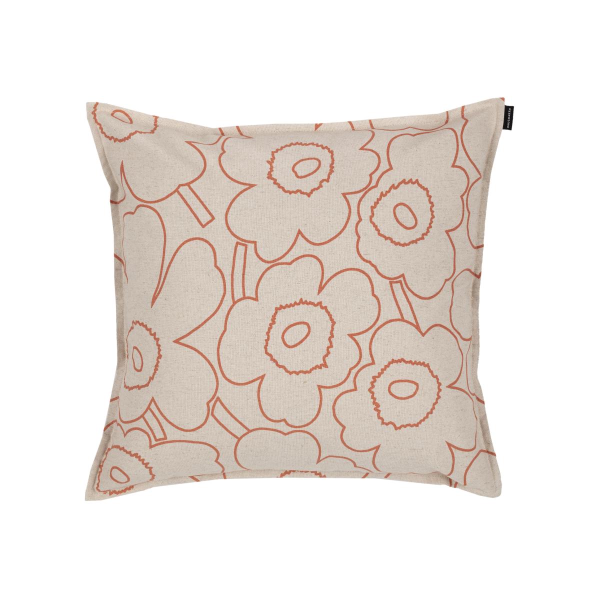 Maija Isola's iconic Unikko flower pattern is the emblem of the Marimekko design house. It was designed in 1964, just after the founder of the Marimekko brand, Armi Ratia, publicly announced that she was banning floral patterns, which were considered hackneyed. Maija Isola defied her by drawing a series of floral designs whose style was so innovative and fresh that Armi changed her mind. Ironically, the Unikko pattern has become the emblem of the brand. Cheerful, chic and graphic, textile collection by Marimekko breathes life into your interior! Their original patterns blend together wonderfully. Created in 1951, Marimekko is a state of mind, a way of life based on creativity, freedom of spirit and inventiveness. Its notoriety dates back to 1960, the year in which Jackie Kennedy made several public appearances in dresses designed by Marimekko. The brand went on to enjoy enormous success, which continues today with a range of clothing and decorative accessories in vibrant colours, for a house full of inspiration! PLEASE NOTE. Cushion cover sold on its own: the filling is sold separately.