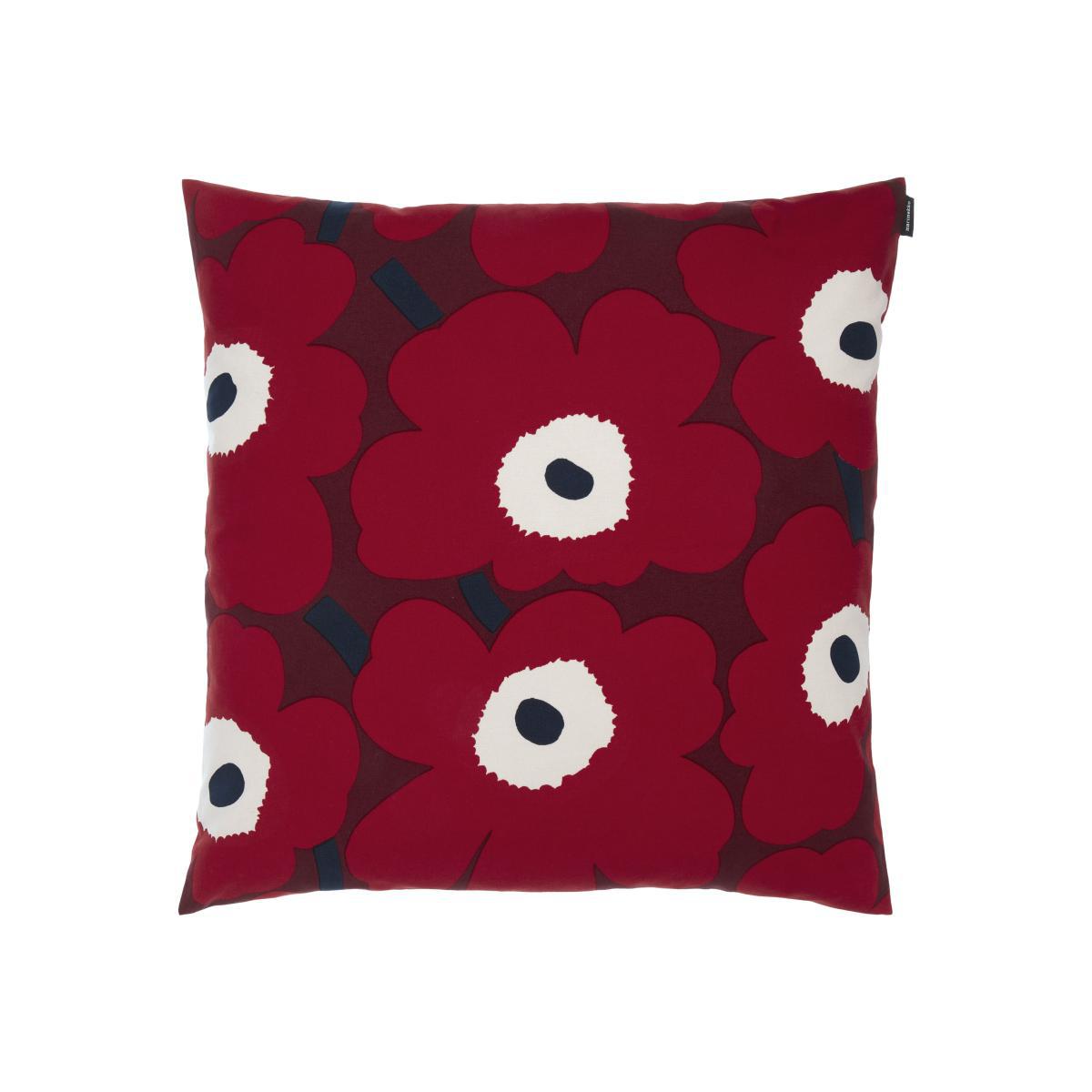 PLEASE NOTE: cushion cover sold on its own (filling sold separately). Maija Isola's iconic Unikko flower motif is the emblem of the Marimekko design house. It was designed in 1964, just after the founder of the Marimekko brand, Armi Ratia, publicly announced that she was banning floral motifs, which were considered hackneyed. Maija Isola defied her by drawing a series of floral designs whose style was so innovative and fresh that Armi changed her mind. Ironically, the Unikko motif has become the emblem of the brand. Cheerful, chic and graphic, the collection of Marimekko cushion covers brightens up your interior! Their original patterns blend together wonderfully. Created in 1951, Marimekko is a state of mind, a way of life based on creativity, freedom of spirit and inventiveness. Its notoriety dates back to 1960, the year in which Jackie Kennedy made several public appearances in dresses designed by Marimekko. The brand went on to enjoy enormous success, which continues today with a range of clothing and decorative accessories in vibrant colours, for a house full of inspiration!.