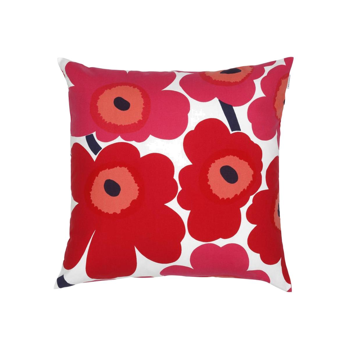 The Pieni Unikko cushion cover is by the Finnish design brand Marimekko with the classic Pieni Unikko pattern that is found on many of Marimekko's products. The pattern was designed by Maija Isola and Kristina Isola and is available in a number of colours.