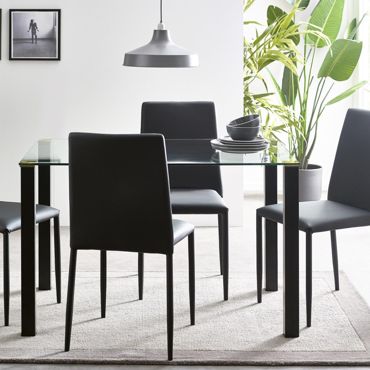 The Piero dining table is a sleek, contemporary piece that works beautifully in modern and minimalist interiors. I love its clean lines and striking black finish, which make it a versatile base for both neutral and patterned table settings. The glass top adds a touch of elegance and keeps the overall look light and airy, perfect for smaller dining spaces or open-plan rooms. When styling, consider pairing it with monochrome or metallic accessories for a polished look, or add colourful chairs to introduce vibrancy. Practical tips include opting for cushions on seats or a runner down the centre for visual interest, but keep the accessories simple to let the table’s refined design stand out.
